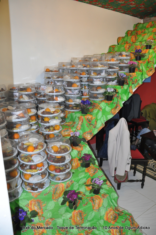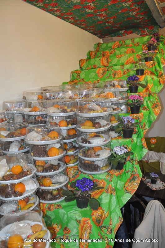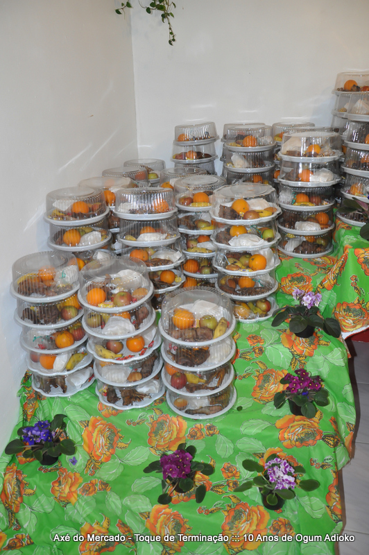 Dentro de nossa tradição religiosa sempre que existe obrigação onde são assentados orixás ou onde são cortadas aves ou 4 pé nos orixás já assentados é distribuído mercado ao final aos visitantes. O mercado é um axé que serve para distribuir uma parte da obrigação religiosa aos que visitaram a festa.