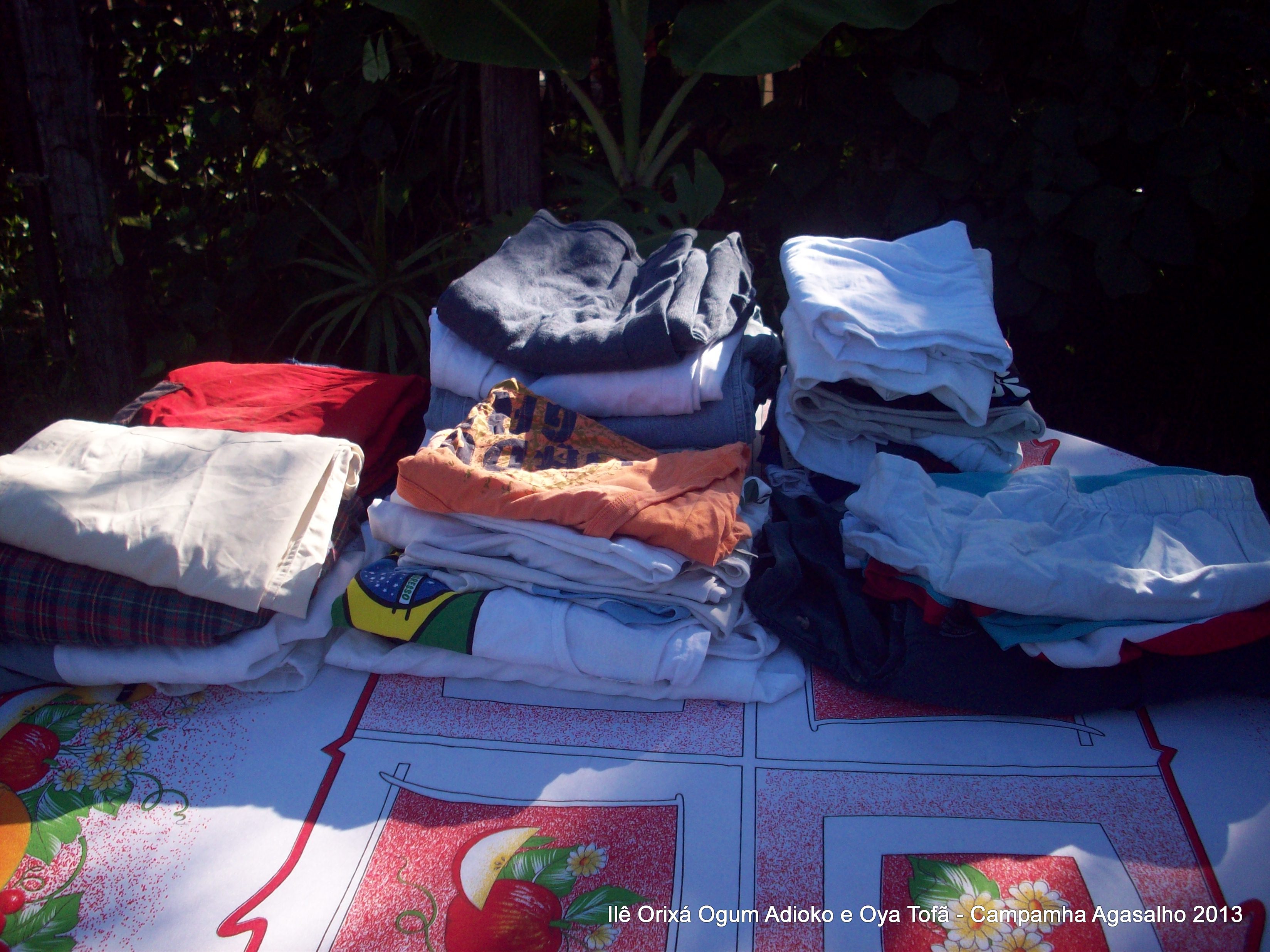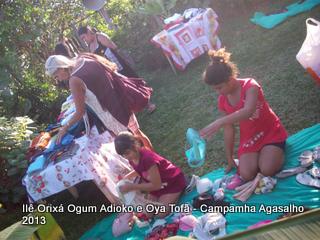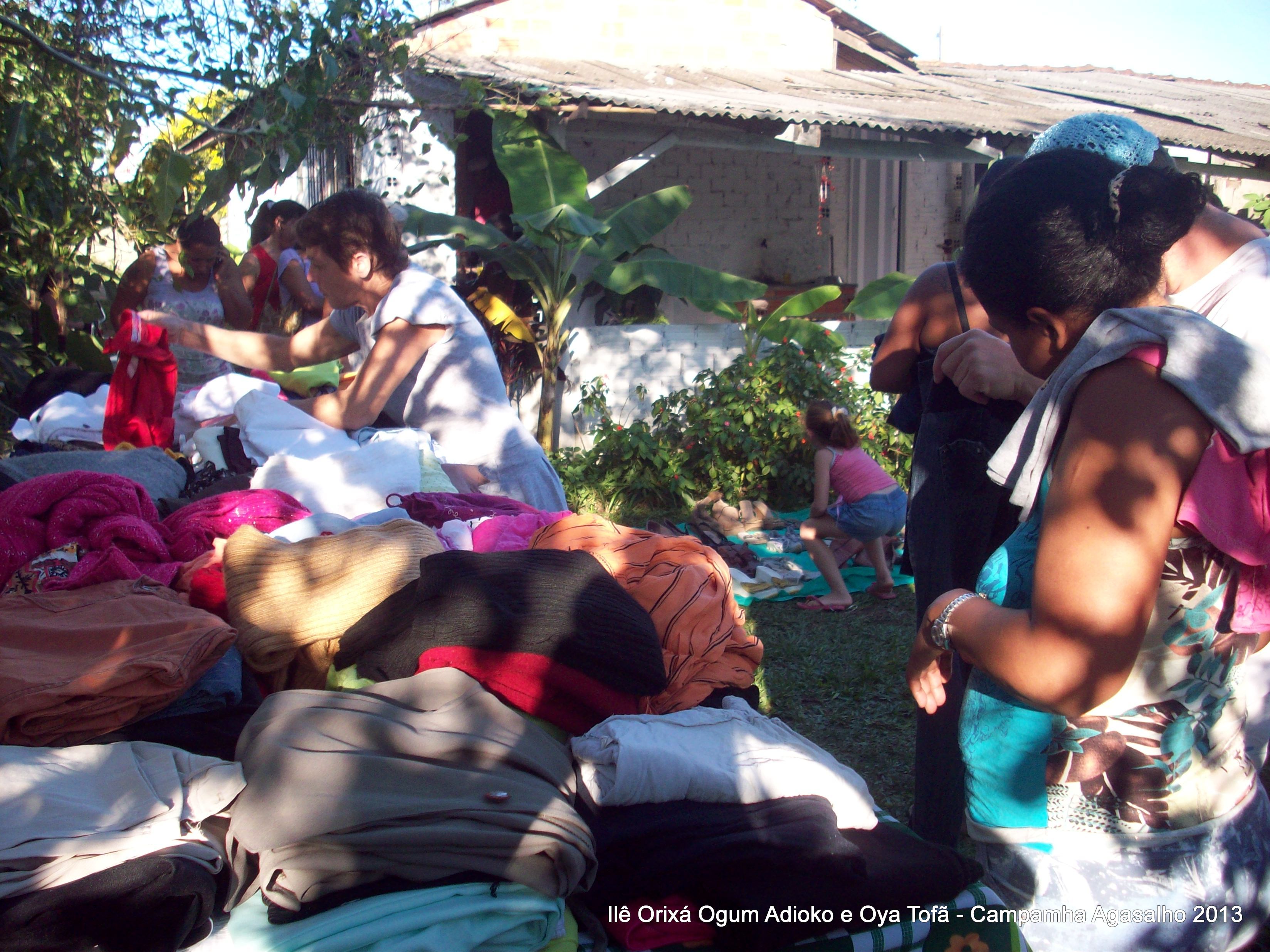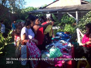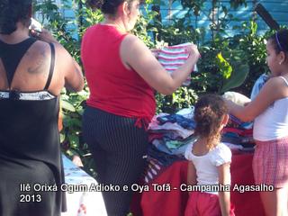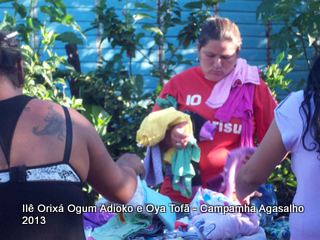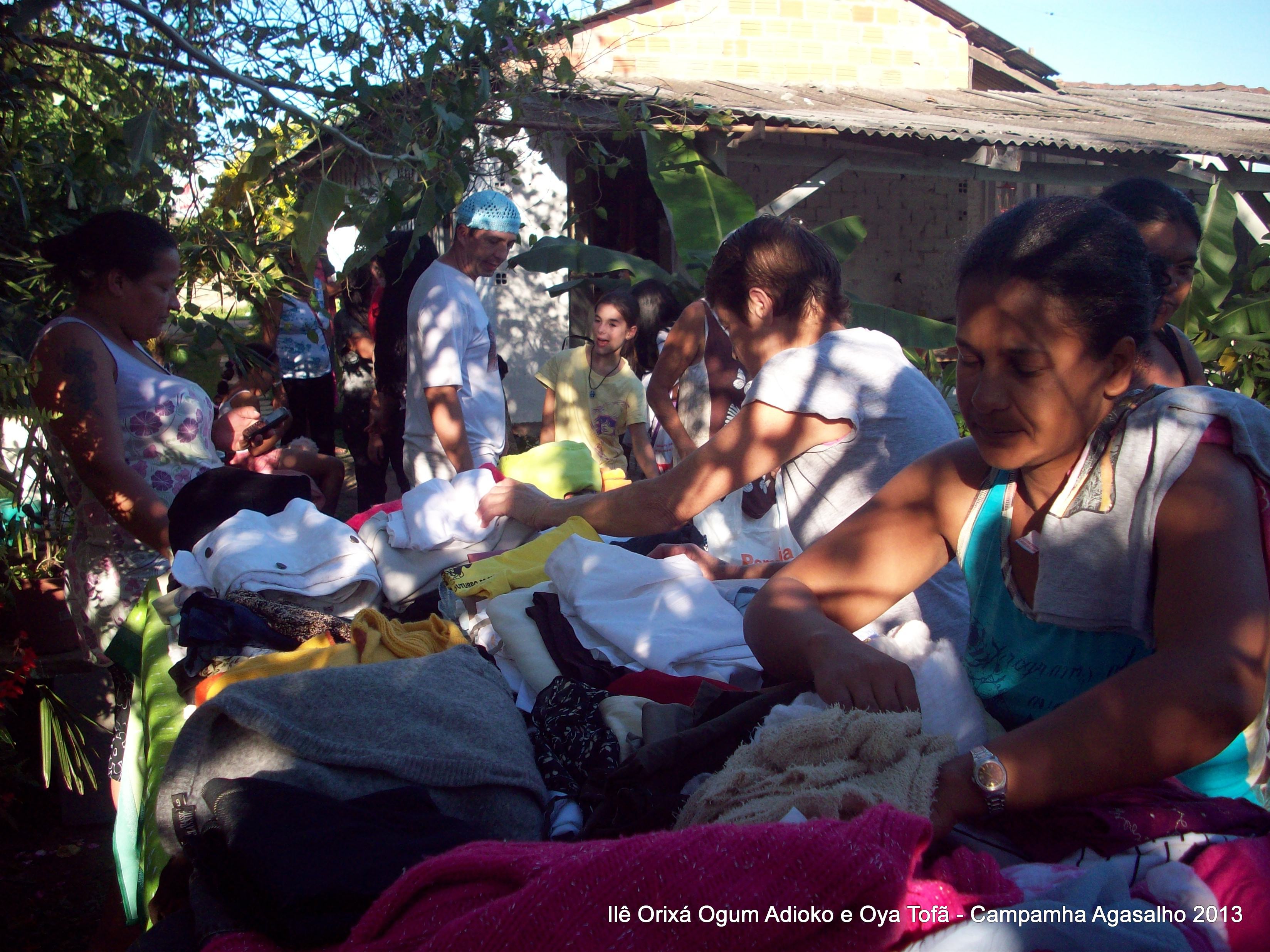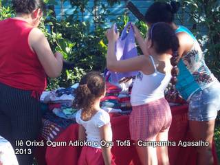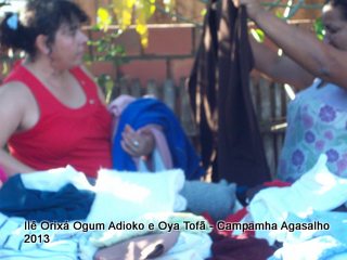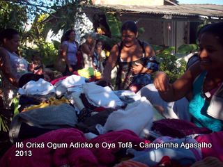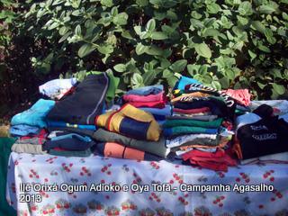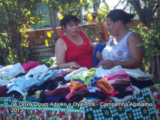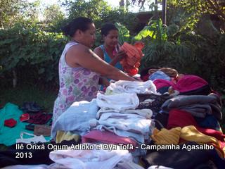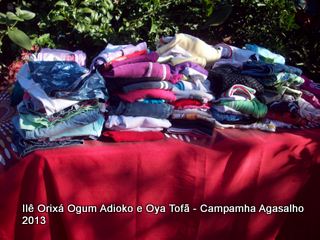 Pai Ronie de Ogum Adioko e Pai Alexandre de Oya Tofã agradecem a todos que permitiram que esta campanha acontecesse, doando roupas e calçados para a distribuição as famílias da região. O Ilê Orixá agradece aos filhos do axé que estiveram presentes na classificação e distribuição das roupas para a campanha do agasalho.
