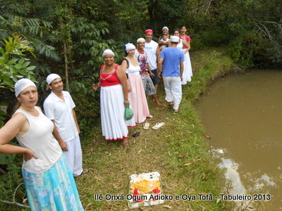 Na tarde do dia 29 de dezembro de 2013, Pai Ronie de Ogum e Pai Alexandre de Oya, acompanhados dos filhos do axé Cláudia de Iemanjá, Alexandre de Oxalá, Sheila de Bará Lanã, Gisele de Iansã, Érica de Oya, Marcelo de Ogum, Michele de Obá, Edgar de Xangô Godô, e a pequena Heloisa, filha exsanguinea de Sheila e Marcelo e Júlia (amiga do axé), entregaram tabuleiro nas águas do Lago Oxum Dioni, como forma de agradecimento pelo ano de Xangô e realizaram pedidos de prosperidade e saúde a Xapanã e Obá.