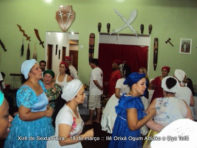 Ocorreu no dia 18 de março o Xirê de sexta, como é conhecido pelos frequentadores do Ilê, com a presença de filhos do axé e alguns amigos que frequentam a casa. É o momento onde os orixás novos podem aprender com os mais antigos e onde a população que frequenta a casa tem condições de receber o axé dos orixás. A grande maioria das casas de axé não fazem xirês fora do período dedicado a festa do orixá guardião da casa, e isso é amplamente compreensível pois desgasta e cansa aos que fazem.