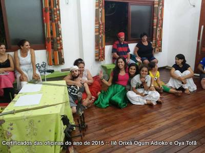 Durante a tarde de sábado do dia 5 de março os filhos do axé Ilê Orixá reuniram-se para entrega dos certificados das oficinas realizadas no ano de 2015. Foram realizadas durante o ano de 2015 quatro oficinas dentro das dependências do Ilê, mesma ocasião em que foram entregues os certificados de assentamento de orixás realizados no ano de 2015.