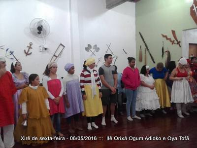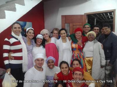 Dia 6 de maio, ocorreu o xirê do mês de maio no Ilê Orixá, onde novamente os filhos e alguns amigos reuniram-se para prestigiar nossos orixás e compartilhar de momentos agradavéis em família, pois a família religiosa é uma extensão da família de cada um. Orixás respondem sempre em obrigações, em respeito ou ainda de acordo com a necessidade, desta forma nos xirês de sexta os orixás respondem para dar o seu axé, para enssinar e também mostrar o caminho. o mês de abril não ocorreu o xirê devido a obrigação de Oya Tofã e seus filhos, que mobilizou todos os filhos e amigos do axé.
