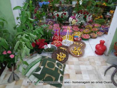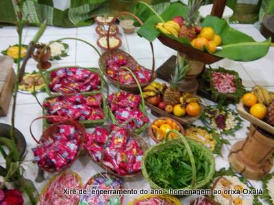 Não se precisa de luxo para cultuar o sagrado, e foi com muita simplicidade que o Ilê Orixá encerrou o ano de 2016 com seu xirê de encerramento do ano aos Orixás Oxalá e Oxum, no Ilê Orixá. Para este xirê não foram sacrificadas aves, já que a obrigaçãod e Pai Alexandre ocorreu no mês de abril, e de Pai Ronie no mês de outubro, não havendo a necessidade de se cortar novamente, até porque não é somente de sangue vermelho que o orixá se alimenta, deve existir um equilíbrio entre os demais tipos e é o somatório de todos que traz a força de realização.