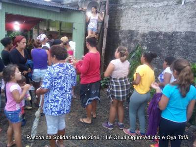No dia 19 de março mais uma uma Páscoa da solidariedade na sede do Ilê Orixá, dando continuidade as atividades sociais que a comunidade Ilê Orixá abraçou e possui responsabilidade em continuar, a fim de manter compromissos e responsabilidades assumidas na sua fundação, no ano de 2011.