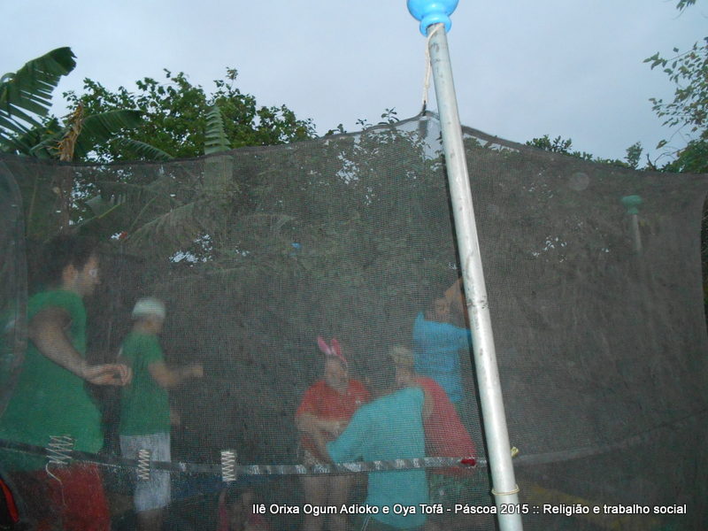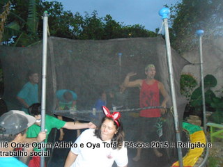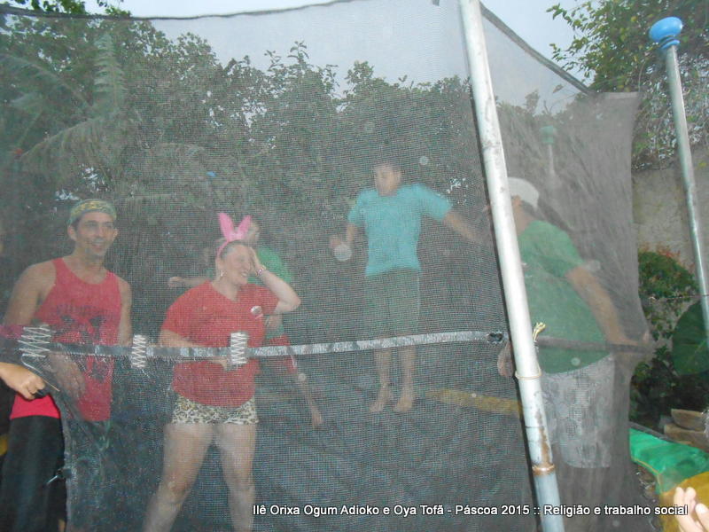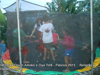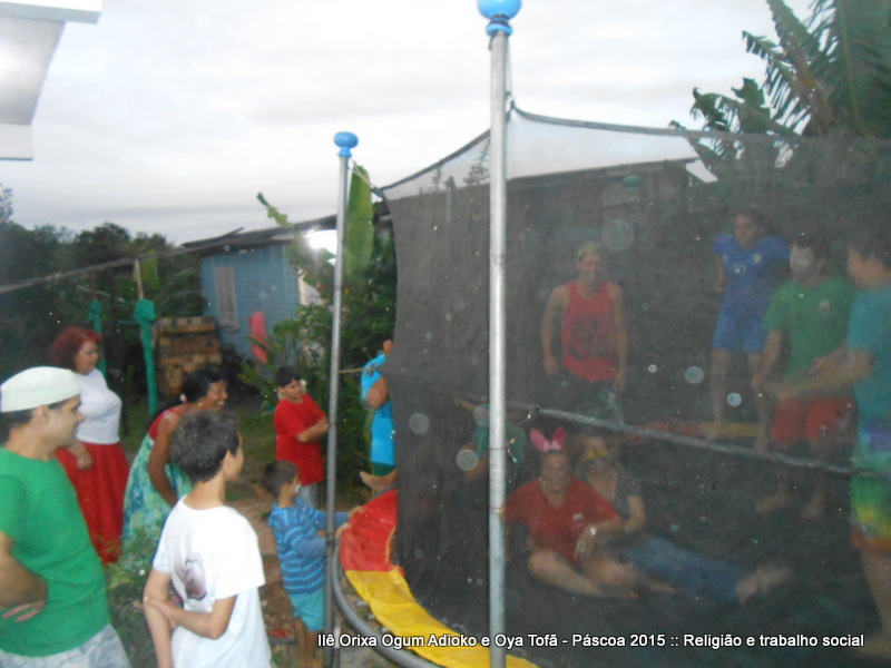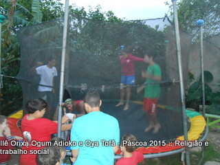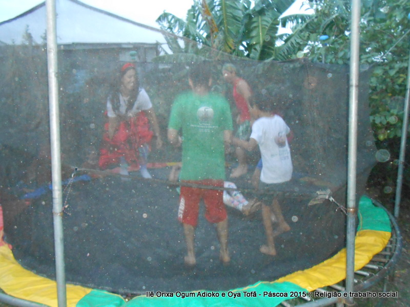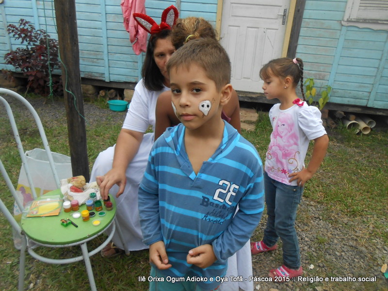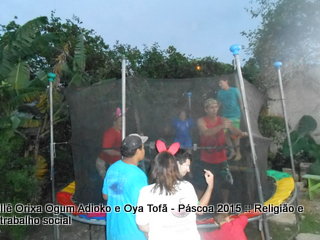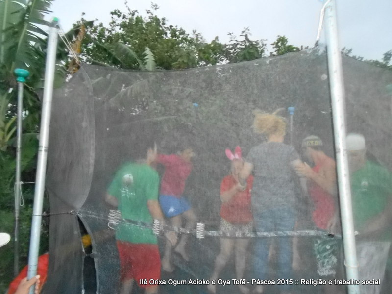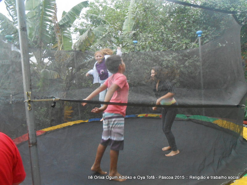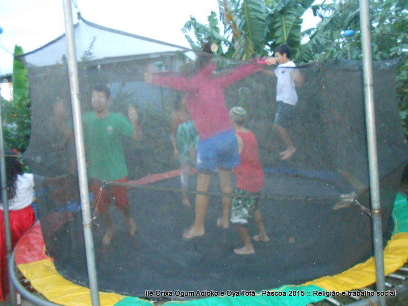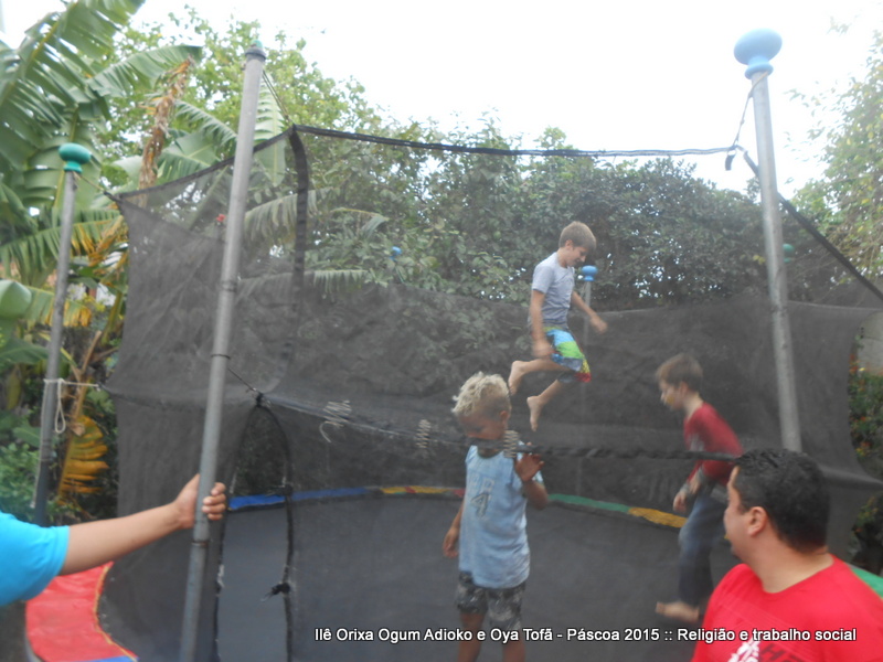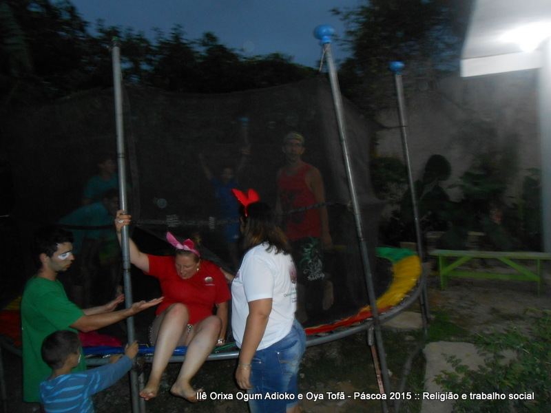Cama elástica e pintura de rostos com temas de páscoa fizeram a tarde valer a pena para todos para as crianças que muitas vezes buscam apenas um espaço para brincar, gritar e ter vontade de ser criança. Espaço este que o Ilê Orixá abre todos os anos em suas dependências.