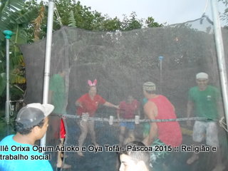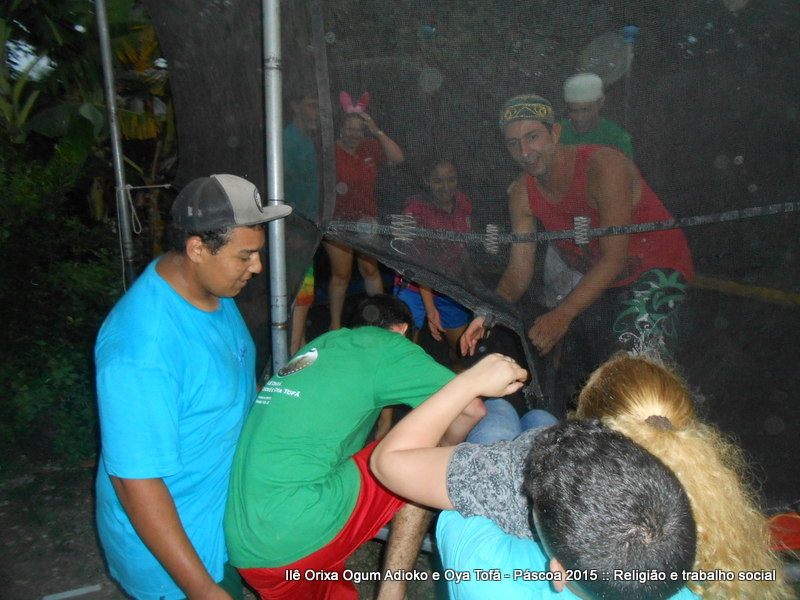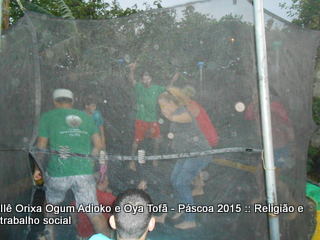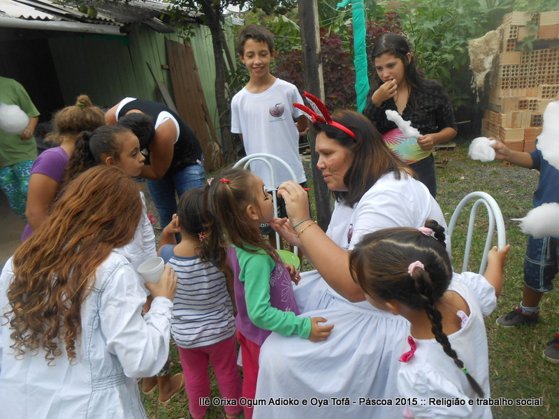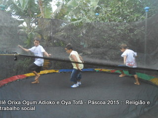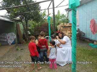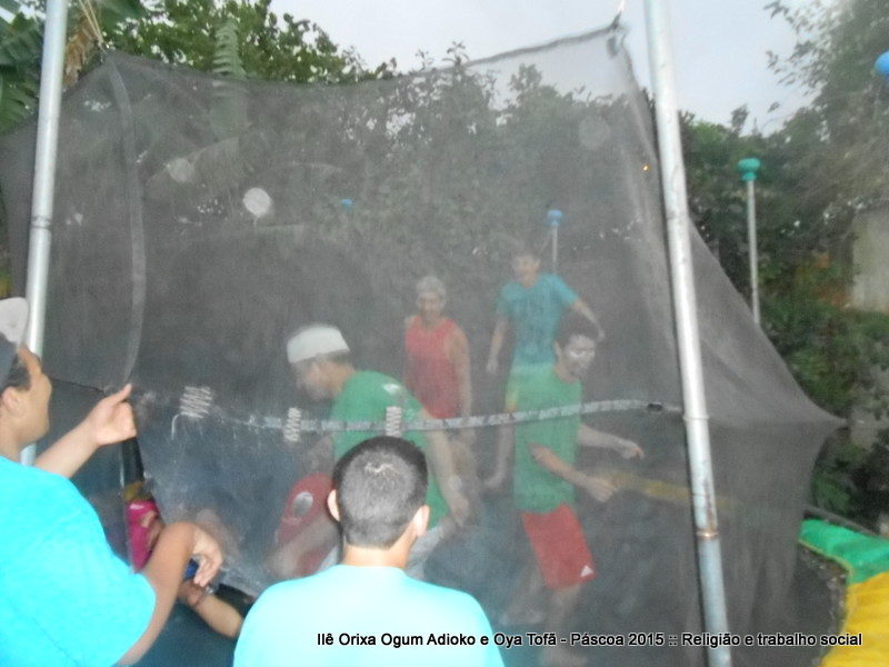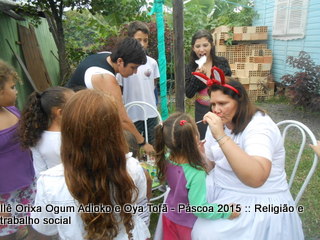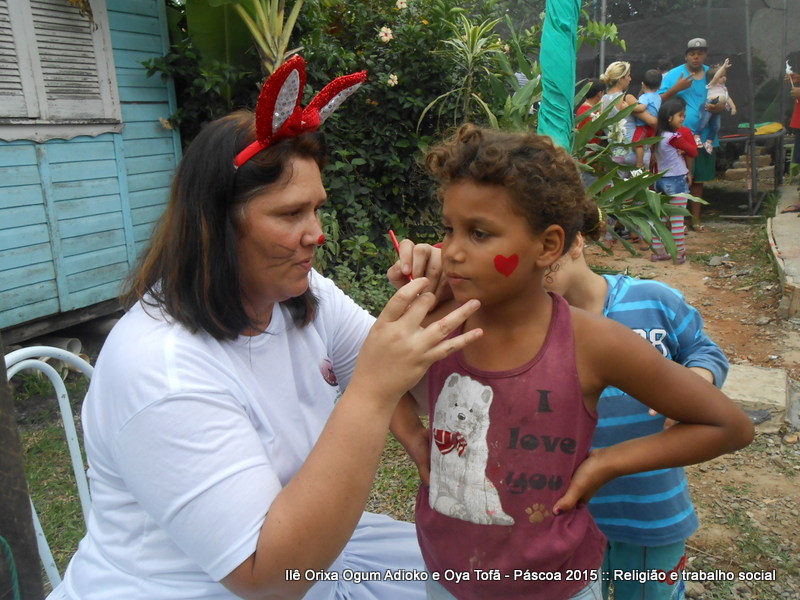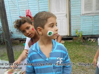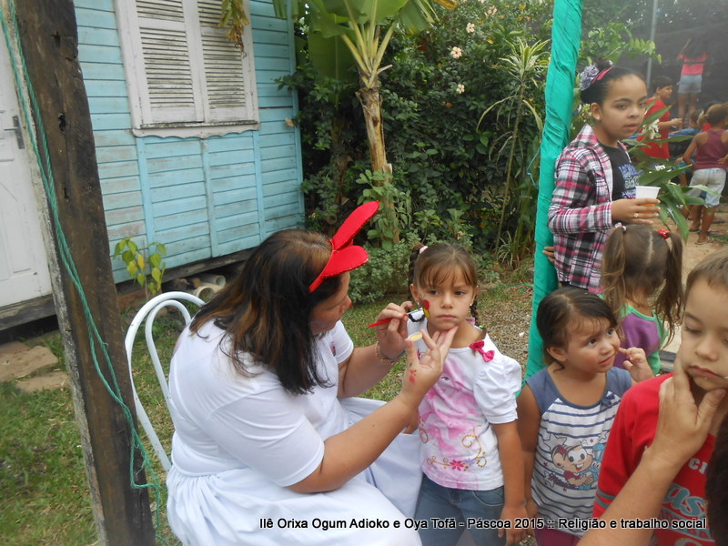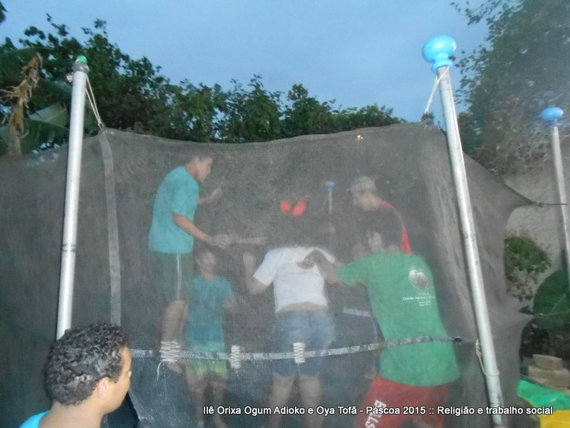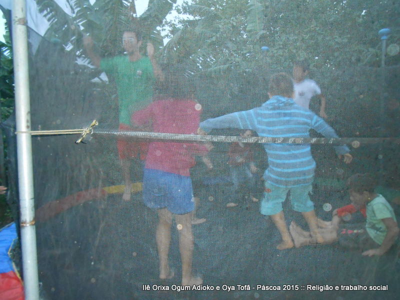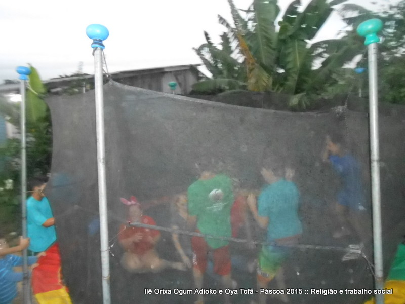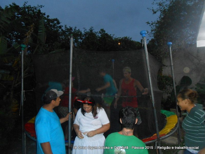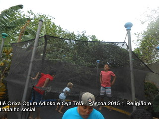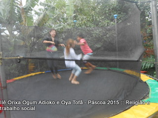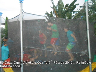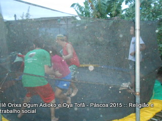 Cama elástica e pintura de rostos com temas de páscoa fizeram a tarde valer a pena para todos para as crianças que muitas vezes buscam apenas um espaço para brincar, gritar e ter vontade de ser criança. Espaço este que o Ilê Orixá abre todos os anos em suas dependências.
