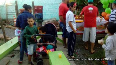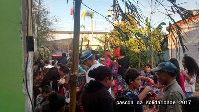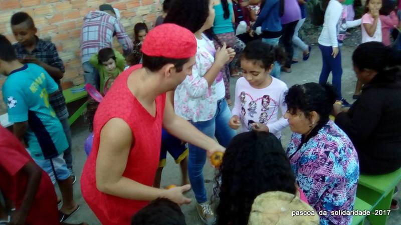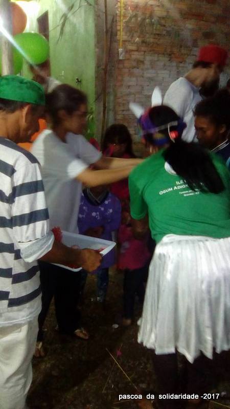 Religião é sempre união, é sempre ajudar e é responsabilidade de todos construir ações para tentar minimizar problemas na comunidade local, pois se cada um fazer a sua parte o resultado final será sempre um menor número de pessoas não atentidas. Esta foi a sexta comemoração da páscoa da solidariedade dentrp do axé, já tendo sido atendidas centenas de crianças, momstrando a todos que religião sempre é possível de andar junto com atividades sociais.