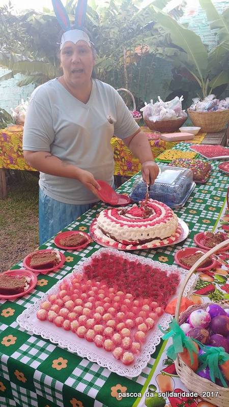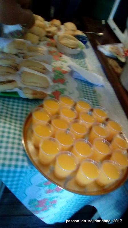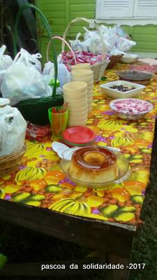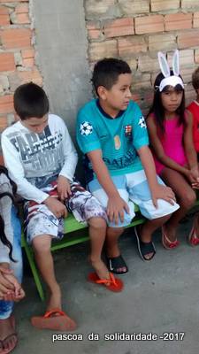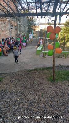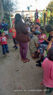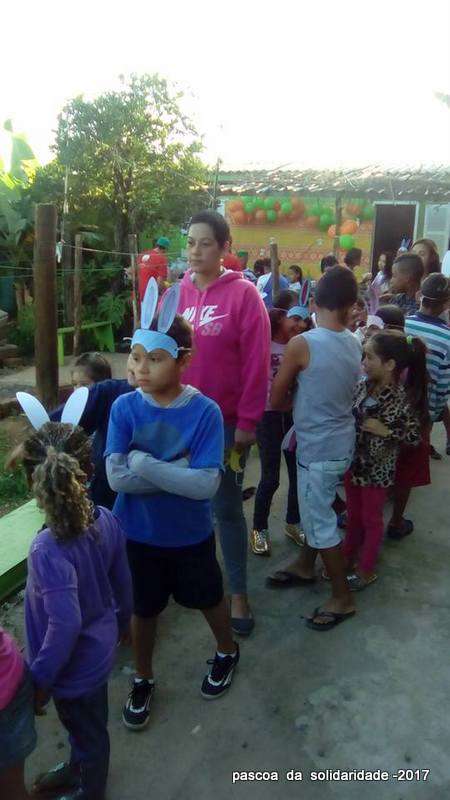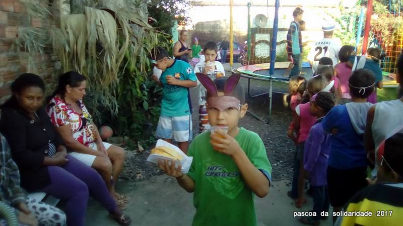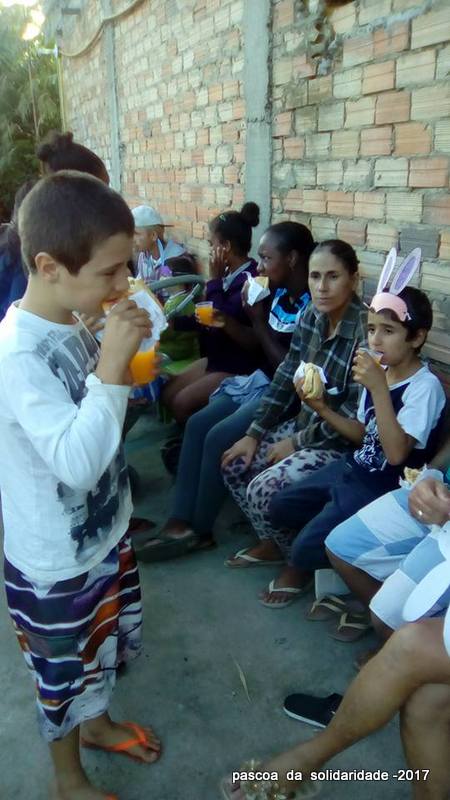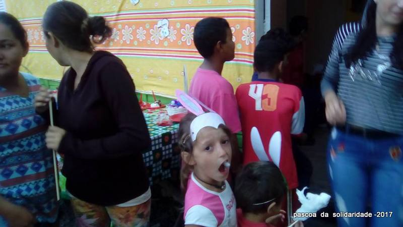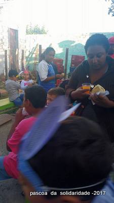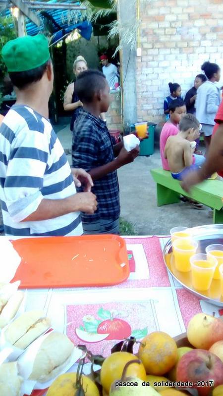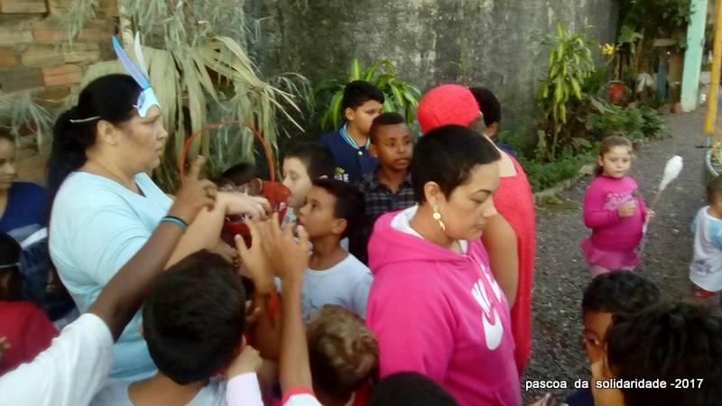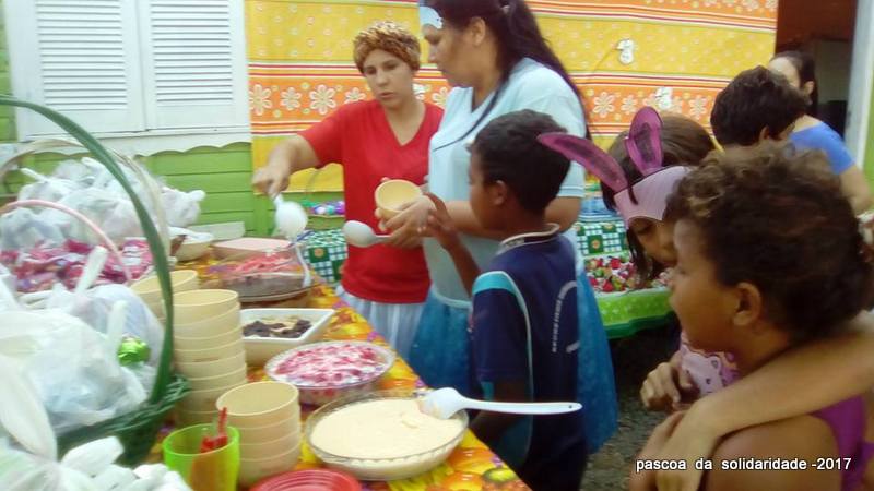 Ao chegarem no local todas as crianças foram servidas co cachorro quente, bolos e uitos doces que além de proporcionarem um momento de integração possibilitou que todas fossem contepladas com uma festa de páscoa.