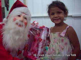 A chegada do Papai Noel foi um dos momentos mais empolgantes da Festa de Natal Social promovido pelo Ilê Orixá, já que as crianças aguardavam ansiosas para receber um presente de Papai Noel, para algumas talvez o único presente recebido neste natal, que minimizou carências e distribuiu alegrias.