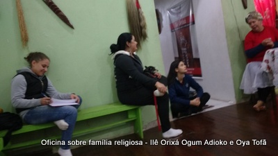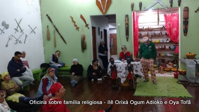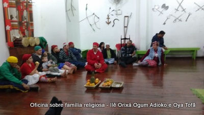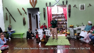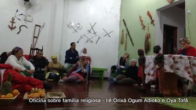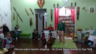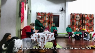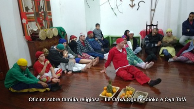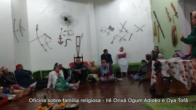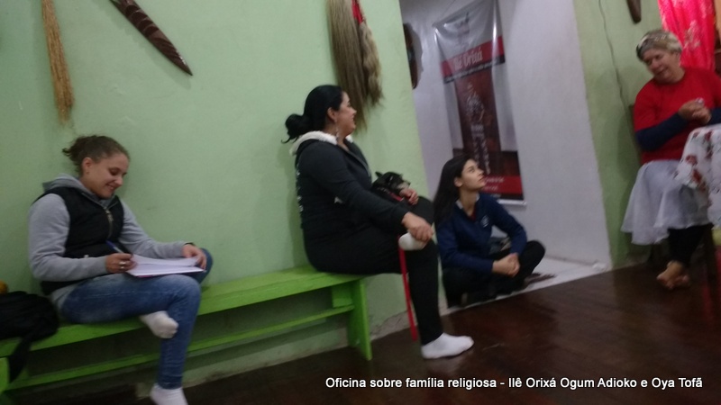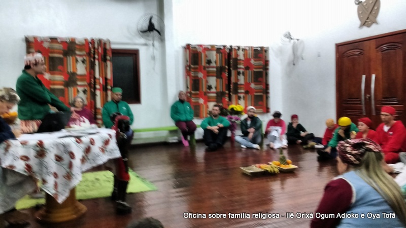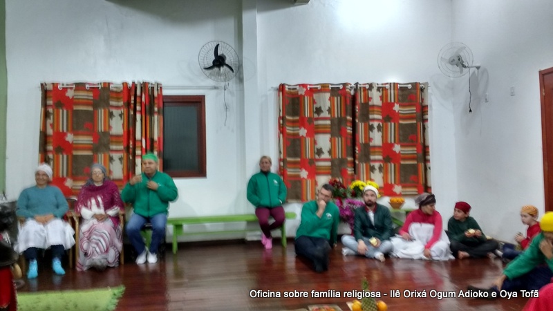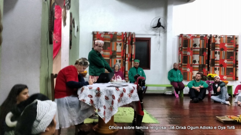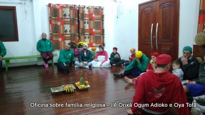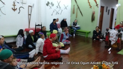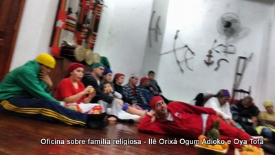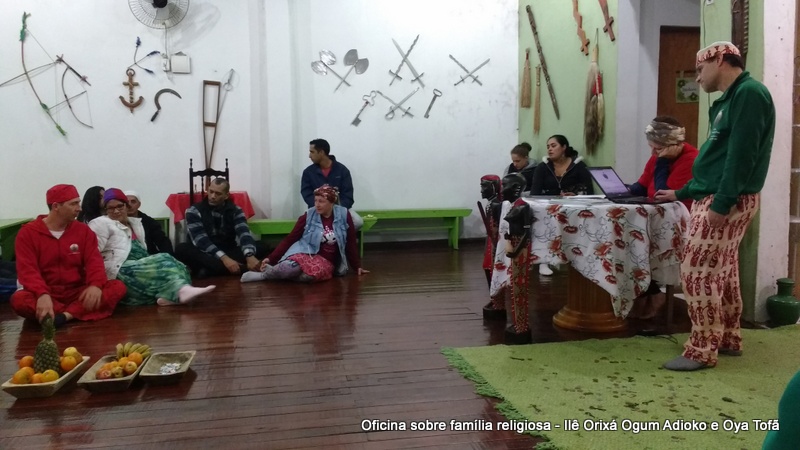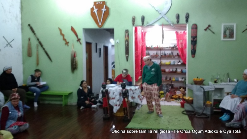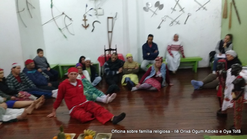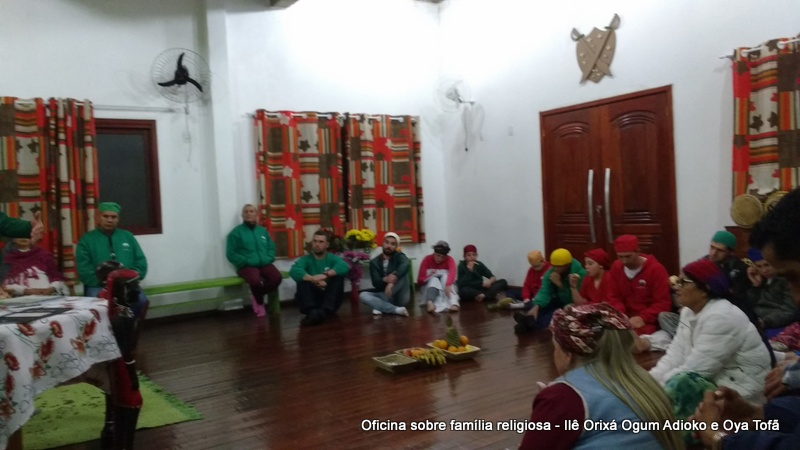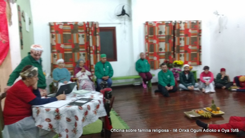 Esta oficina ocorreu no dia 11 de agosto de 2017, as 22 horas, na sede do Ilê Orixá, no salão dos orixás, Pai Ronie de Ogum Adioko iniciou a oficina realizando a leitura de seu último texto “Ubuntu – uma postura adequada”, e logo após se abriu para discussão, foi lembrado por Pai Alexandre de Oya de Tofã, que se faz religião todos os dias, em todos os lugares, não somente dentro de uma casa de religião, foi lembrado por Pai Ronie que a base de nossa religião é a família, no sentido de união, devemos sempre fazer que todos estejam bem, a nossa religião teoricamente é mais unida, inclusive quando se morre, pois existe a despedida de todos pelo irmão. Para o africano não trocamos de família, pois a família é para sempre, e como família precisamos cumprir este papel de fazer todos crescerem, querer ver todos bem. Não pode existir disputa dentro de uma família por nada.