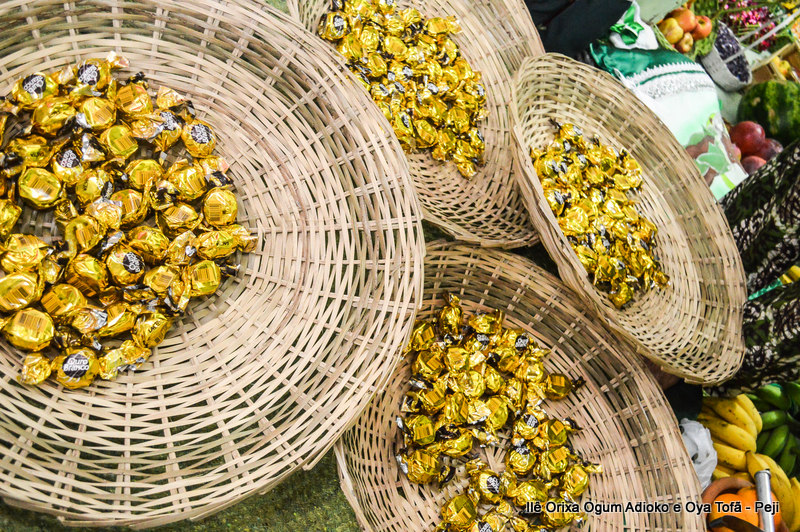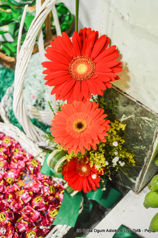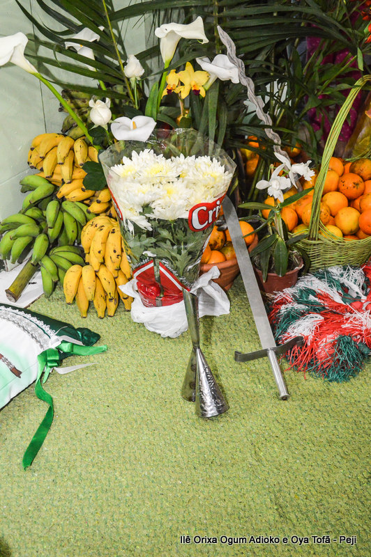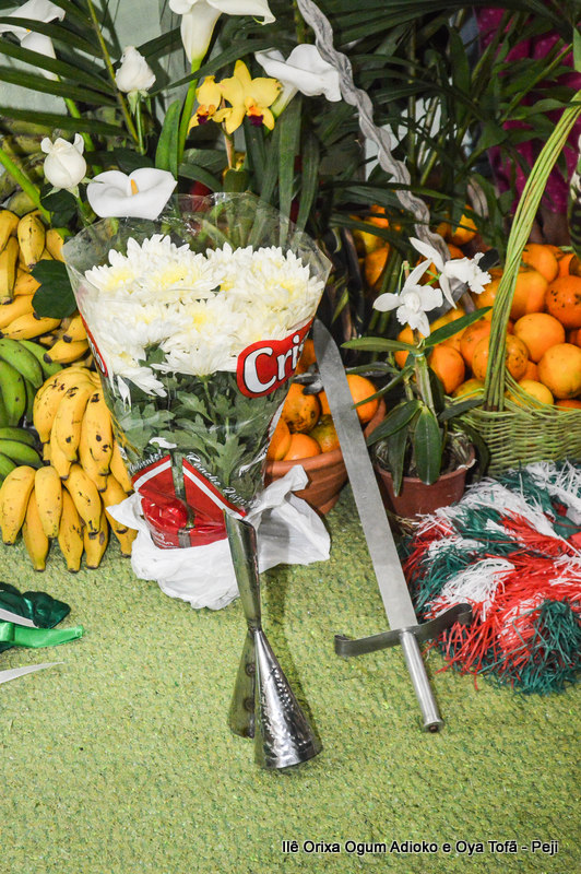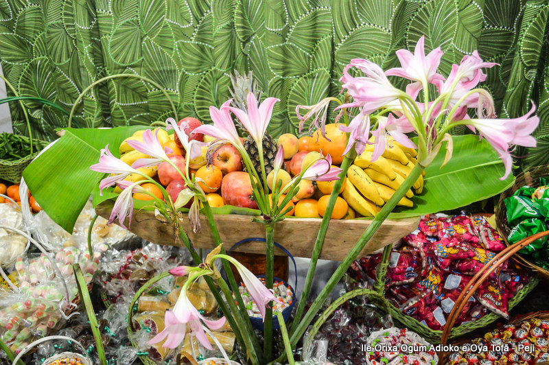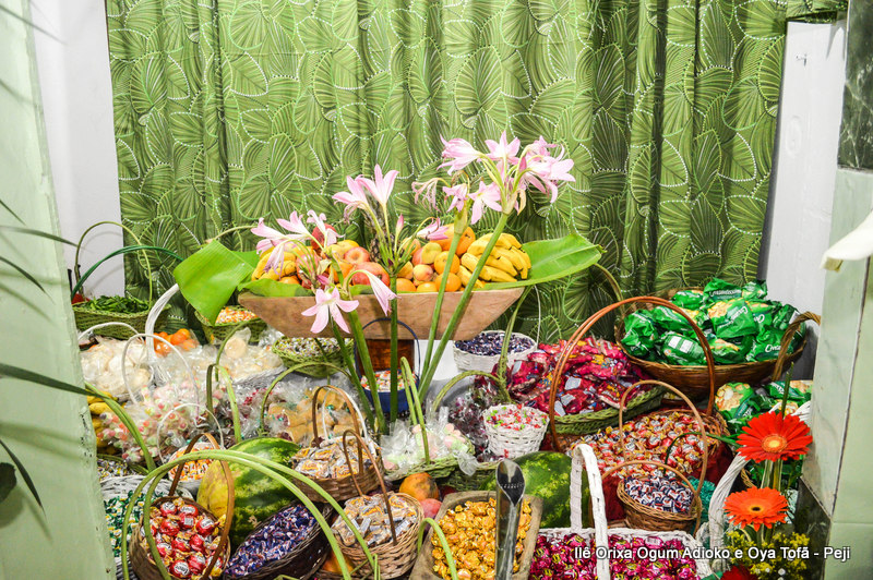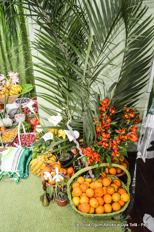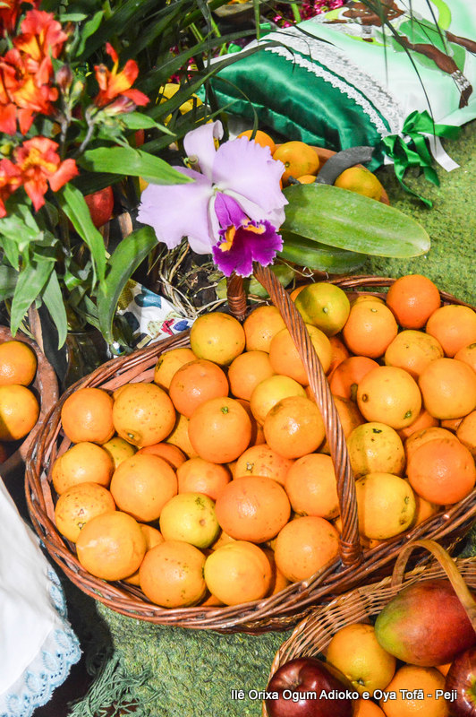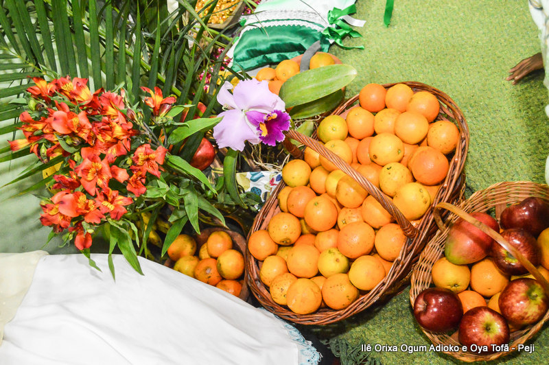 A laranja, principal fruta oferecida para Ogum ornamentou toda a festa e o quarto de santo, com centenas sendo distribuídas durante a noite, levando o axé de Ogum a todos os que passaram pelo Ilê Orixá na noite do dia 18/10.