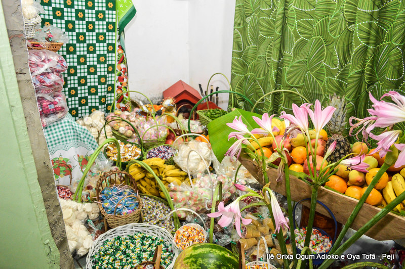 Diante disto percebe-se porque este local é de grande importância para todos de povo de terreiro. Nesta comemoração a entrada do peji (quarto de santo) foi ornametada com folhas de palmeira, que representam o mario de Ogum.