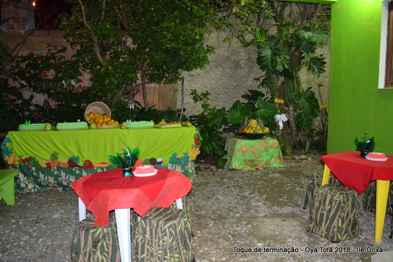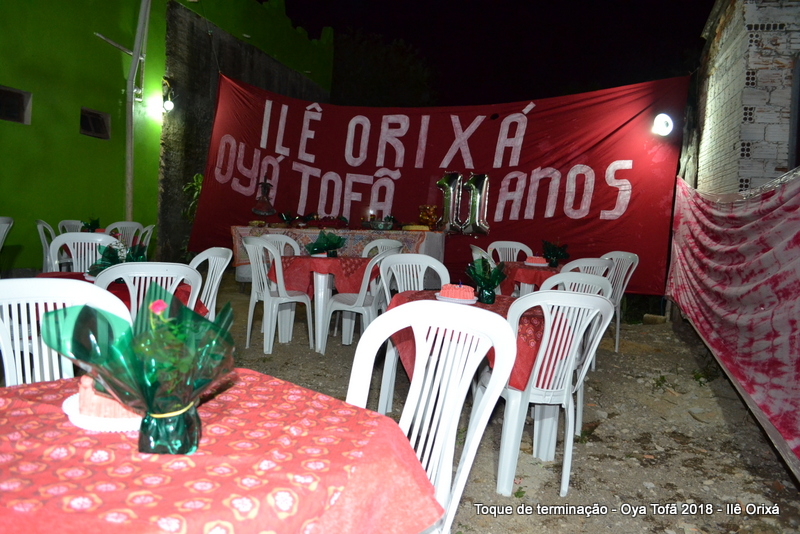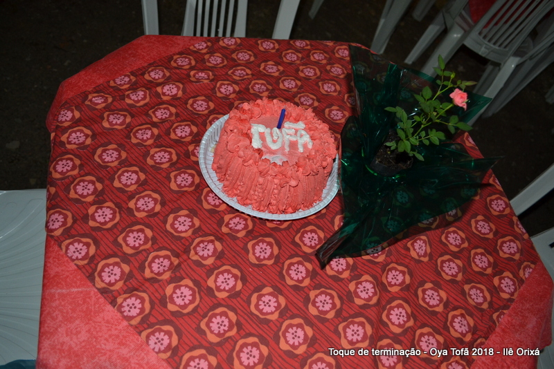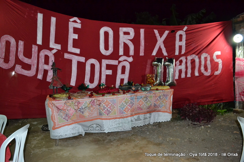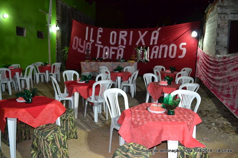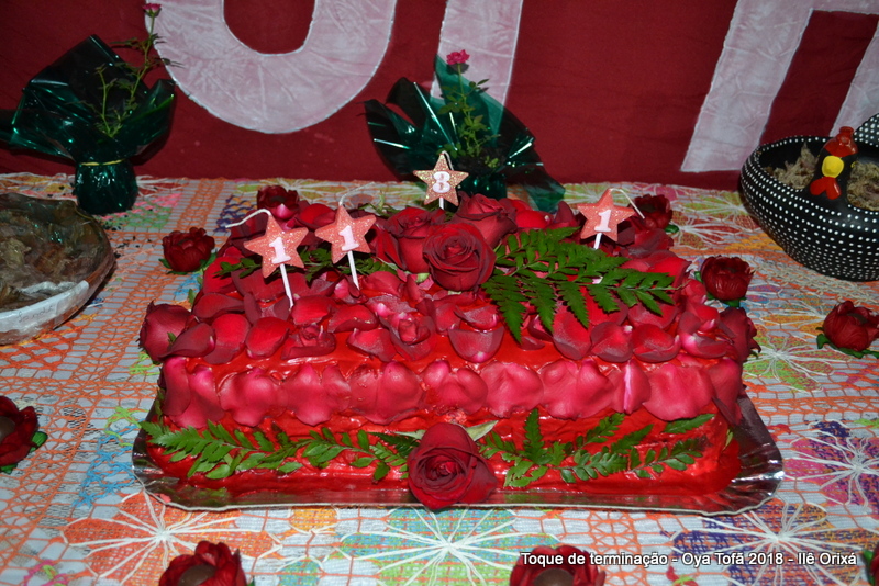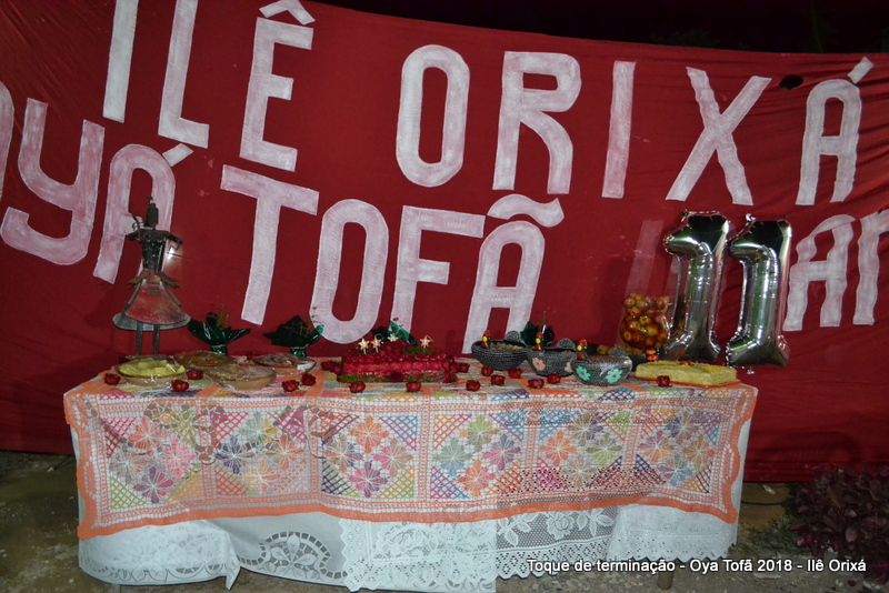 Os 11 anos de Oya Tofã de Pai Alexandre de Oya foram comemorados em uma uma obrigação regada com muita fartura e carinho em todos os espaços do Ilê, e o vermelho foi a cor predominante. Para a comemoração foi servido um mini bolo em cada mesa, representando um dos aniversários de Oya Tofã, que ao final do batuque foram distribuídos. Em cada detalhe é possível perceber o respeito com os orixás de cada um, pois todos são iguais.