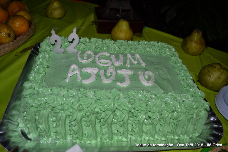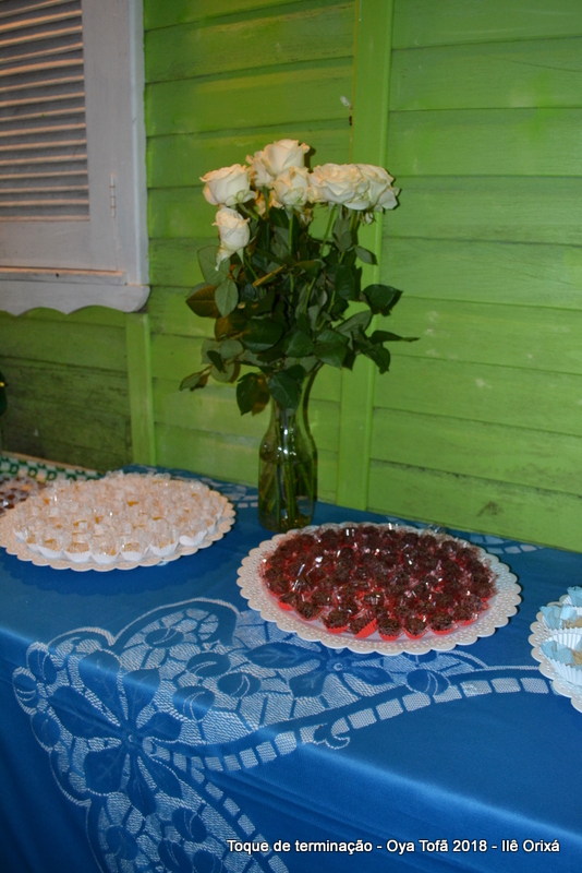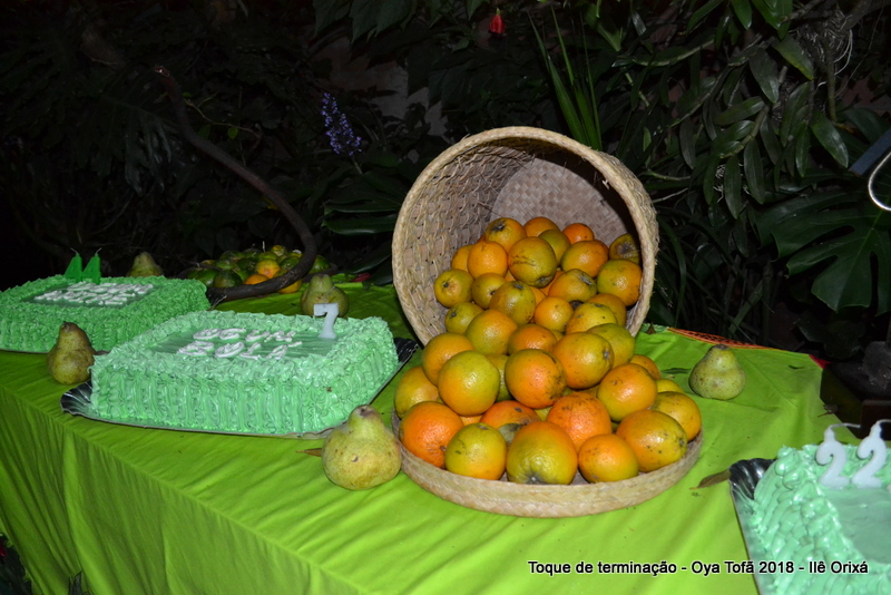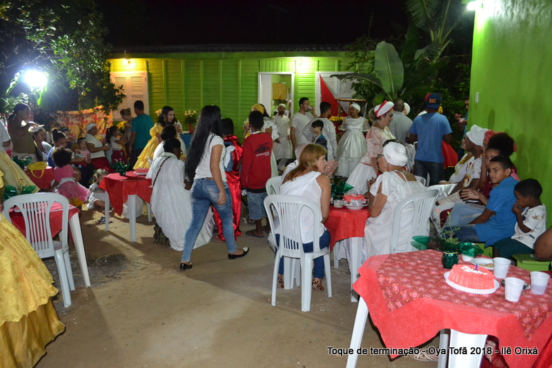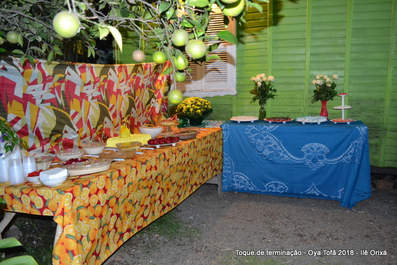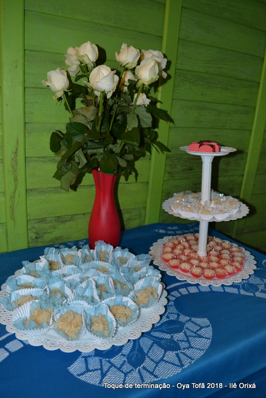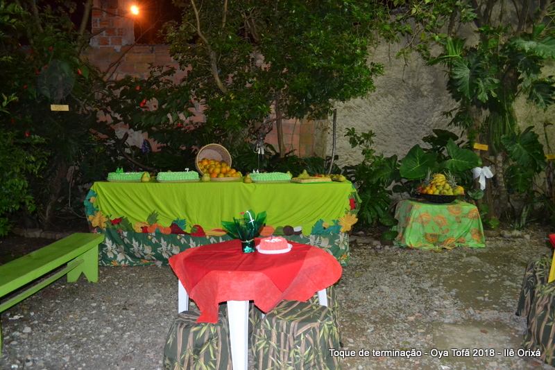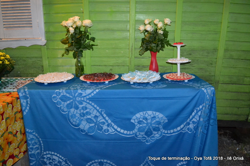 Os 11 anos de Oya Tofã de Pai Alexandre de Oya foram comemorados em uma uma obrigação regada com muita fartura e carinho em todos os espaços do Ilê, e o vermelho foi a cor predominante. Para a comemoração foi servido um mini bolo em cada mesa, representando um dos aniversários de Oya Tofã, que ao final do batuque foram distribuídos. Em cada detalhe é possível perceber o respeito com os orixás de cada um, pois todos são iguais.
