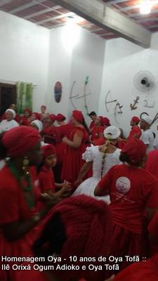 E no dia 25 de março, data de comemoração da primeira festa da obrigação dos 10 anos de Oya Tofã e seus filhos, todos dançaram com a certeza de estarem em plena sintonia com o sagrado, com o seu orixá. Foi um toque fechado, onde somente os filhos do axé estavam presentes, onde todos estavam com os mesmos objetivos, mesmos sentimentos, e isso cria uma sintonia única uma barreira de fé, de força, de fortaleza, pois é isso que o Ilê Orixá é, uma fortaleza de fé, construída todos os dias com que acreditam na religião de matriz africana.
