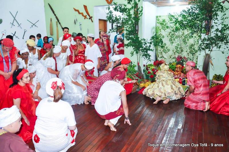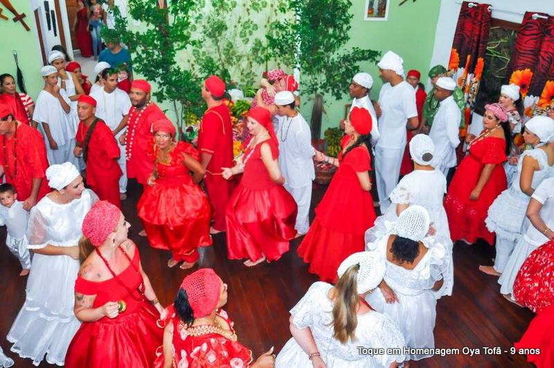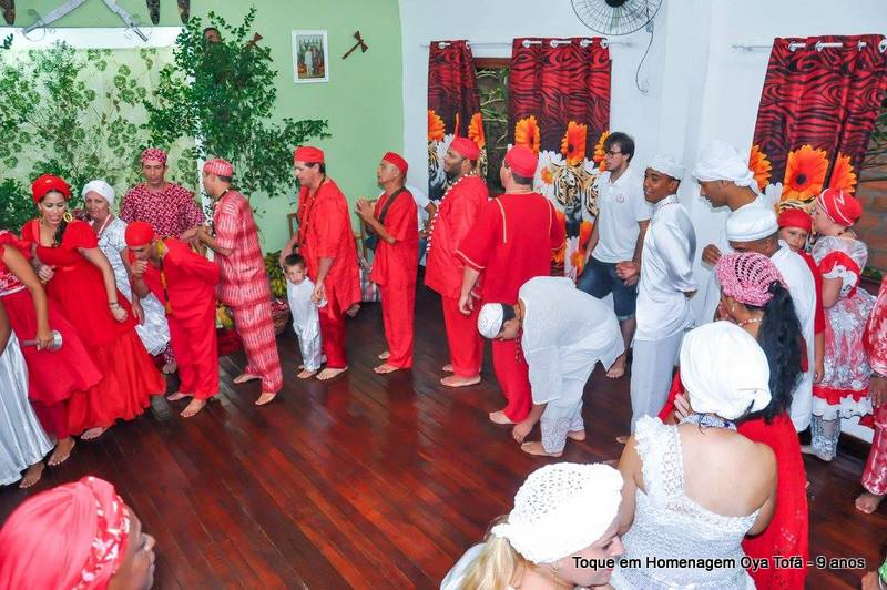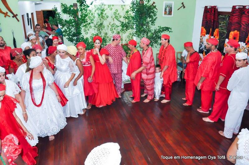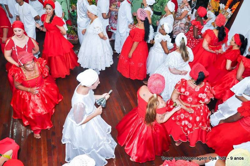 Nos cultos afro-brasileiros é comum dançar de pés descalços, uma forma de respeito e também de separação do espaço profano do espaço sagrado. Ao entrar no salão sagrado dos orixás entramos em contato com um espaço que separa nossa vida cotidiana do sagrado, é um local de purificação, de resgate de valores e também de reconstituição de forças, e para isso deve-se despir de toda sujeira do mundo exterior.