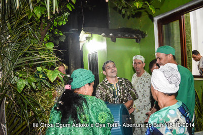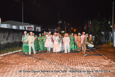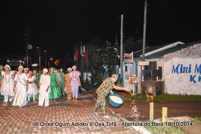 Antes de iniciar o Toque em Homenagem ao Orixá Ogum Adioko, o axé Ilê Orixá se reuniu com os filhos do axé e alguns amigos para saudar Bará Exu. Um momento de grande religiosidade e fé onde os presentes podem pedir a agradecer a este Orixá que nos possibilita que tudo aconteça. A saudação ao Orixá Bará sempre é realizada no encontro da rua Vidal Brasil com a travessa Ilhéus, reunindo dezenas de pessoas. É um momento de grande força e axé, pois mostra a força do axé na rua.