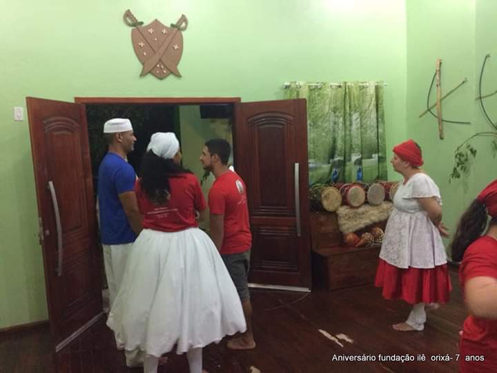 Antes de iniciar o toque de comemoração dos 7 anos de fundação do Ilê Orixá Ogum Adioko e Oya Tofã, no dia 28 de setembro, Pai Alexandre de Oya Tofã e Pai Ronie de Ogum Adioko agradeceram a todos que estavam presentes, lembraram da importância da data e também de como o Ilê Orixá iniciou.