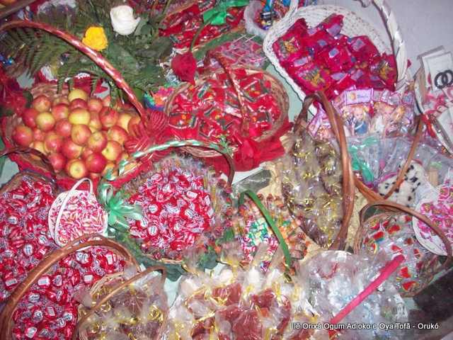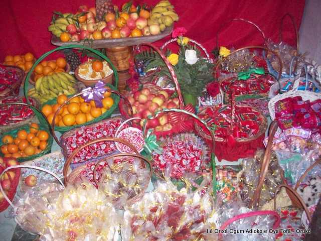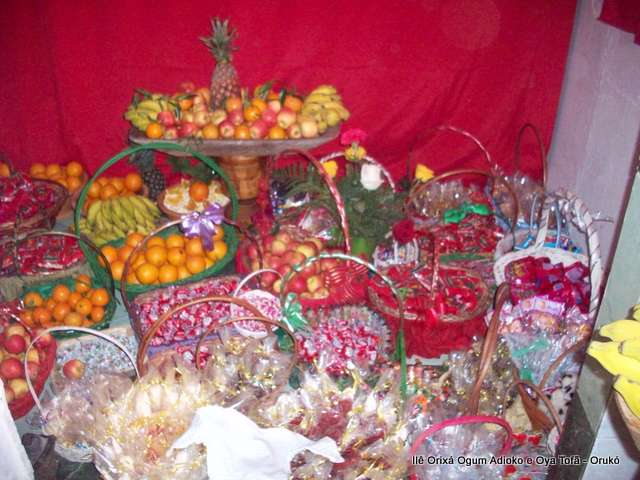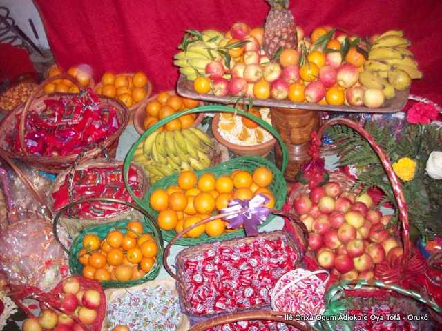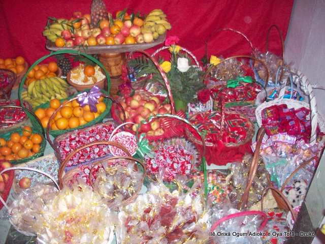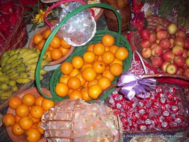 Muitos doces e dezenas de frutas foram utilizados para reverenciar sobretudo os Orixás Xangô e Oxum, que a pureza de cada flor, a doçura de cada doce e o perfume de cada fruta que emanava no dia da festa seja para levar axé de muita felicidade nos corações de cada um que passou no Ilê Orixá.