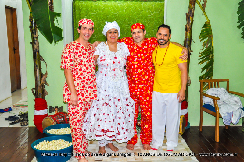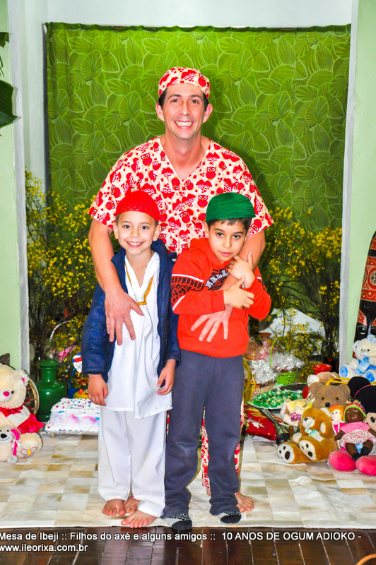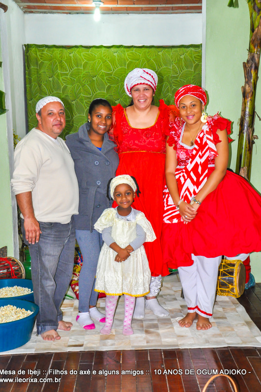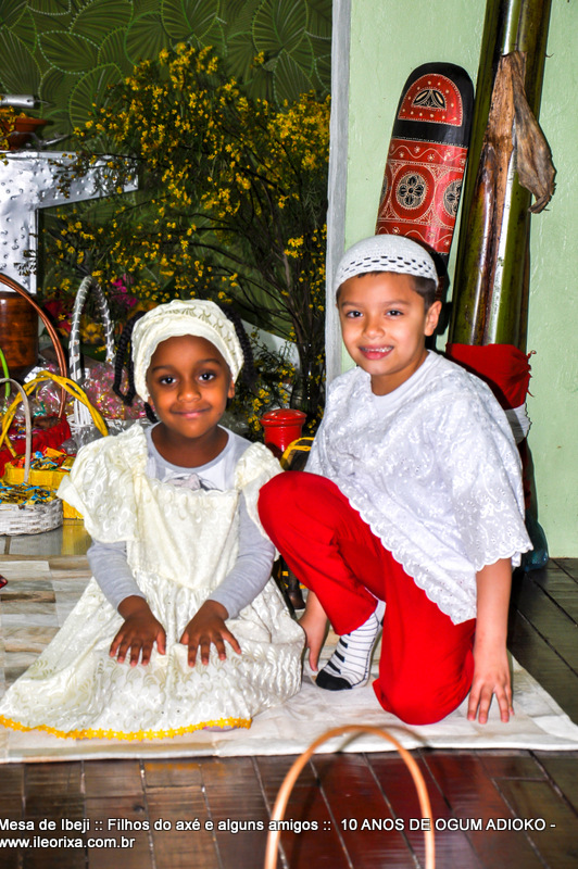 No dia 17 de outubro os filhos e amigos do axé reuniram-se para saudar os Ibejis, dentro das comemorações dos 10 anos de Ogum Adioko e obrigação de filhos que cumpriram preceitos de assentamento para os seus orixás. Dentro de nossa tradição religiosa sempre se deve realizar mesa de Ibeji, antes de uma obrigação de terminação.