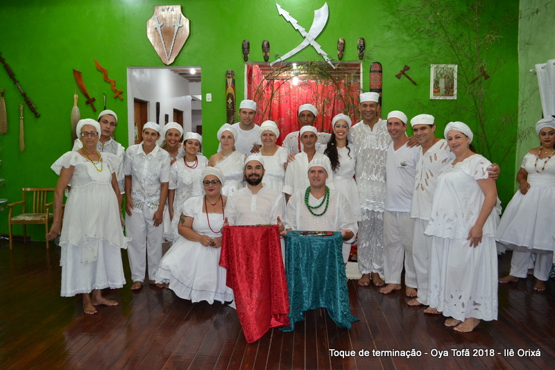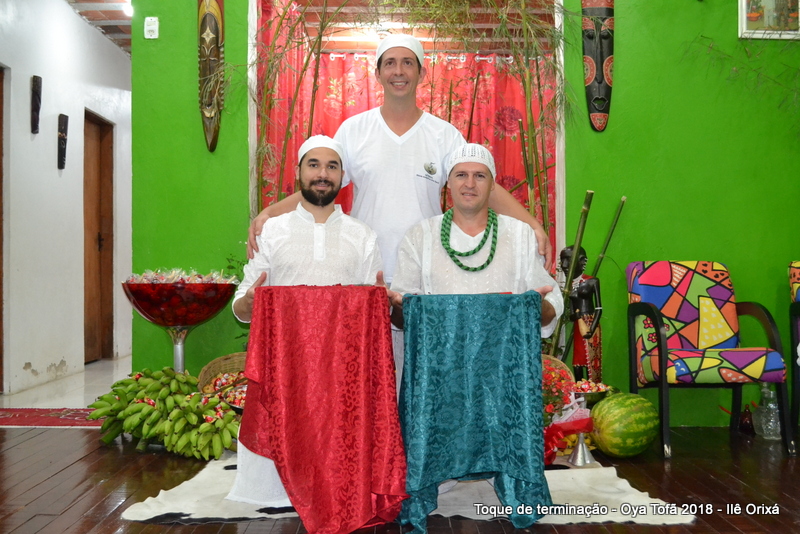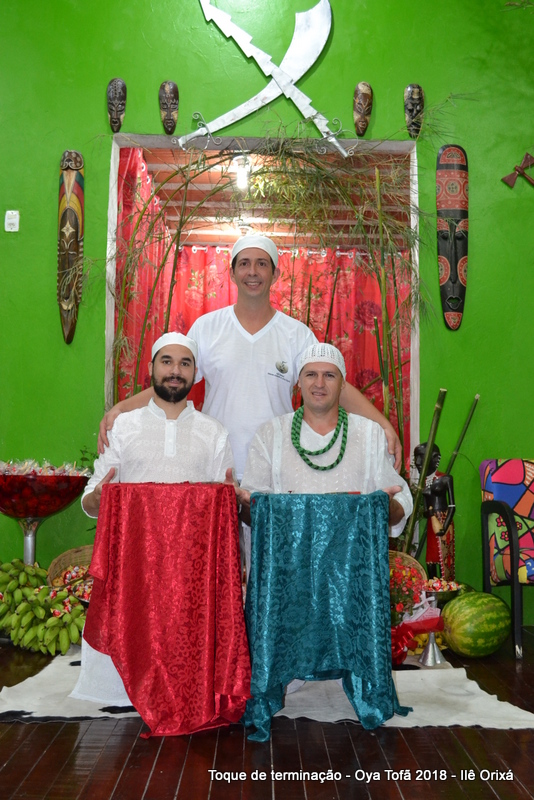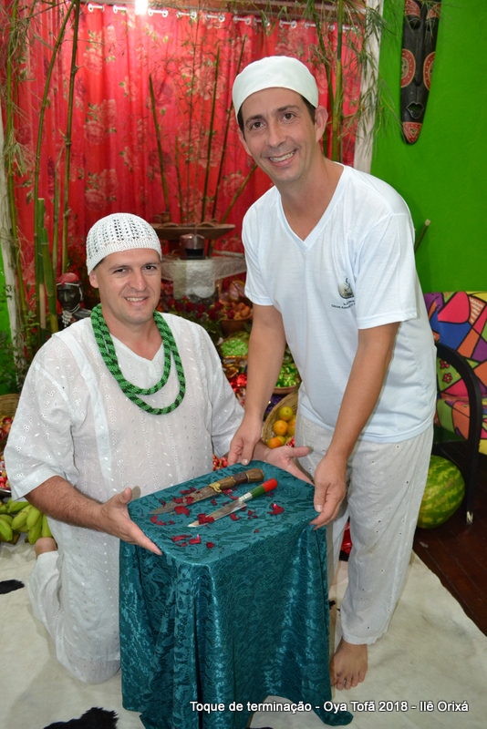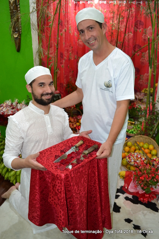 A entrega do axé testemunhada por dezenas de religiosos que se encontravam no salão dos orixás durante a cerimônia, onde Antonio de Oya e Volnei de Ogum deram de comer para seus orixás.