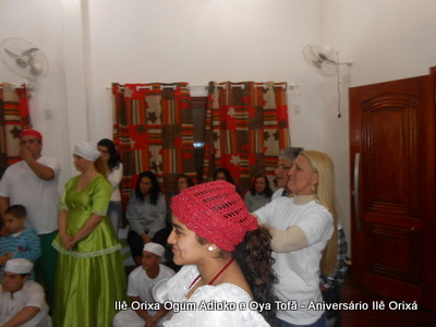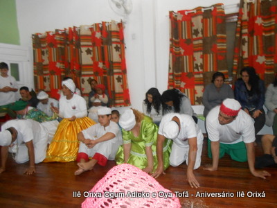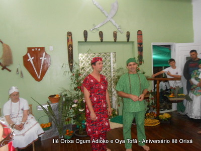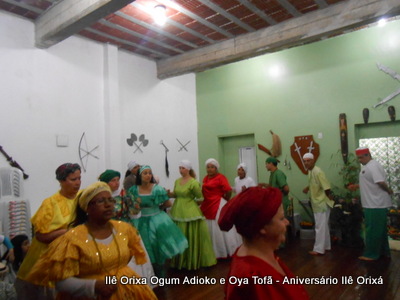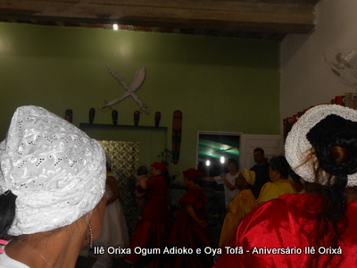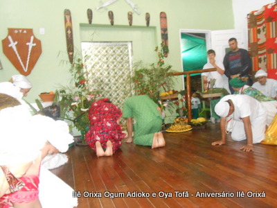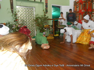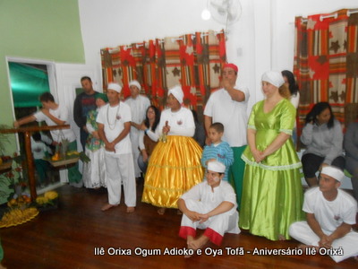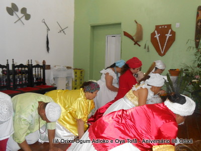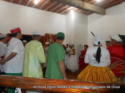 No último da 27/09, foi realizada quinzena com os filhos do axé para comemorar a fundação da casa (3 anos) e aniversário dos Orixás Oya Tofã e Ogum Adioko. A obrigação foi iniciada as 19 horas e teve sua conclusão as 23:30 tendo se estendido bem além da proposta inicial de concluir as 20:30, devido ao entusiasmo de cada um.