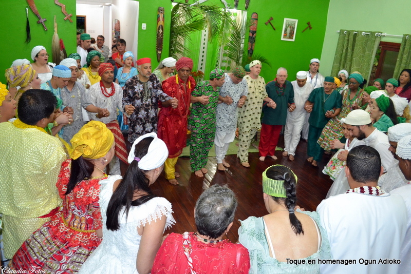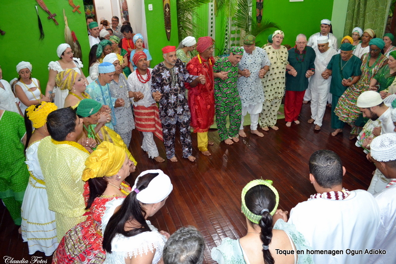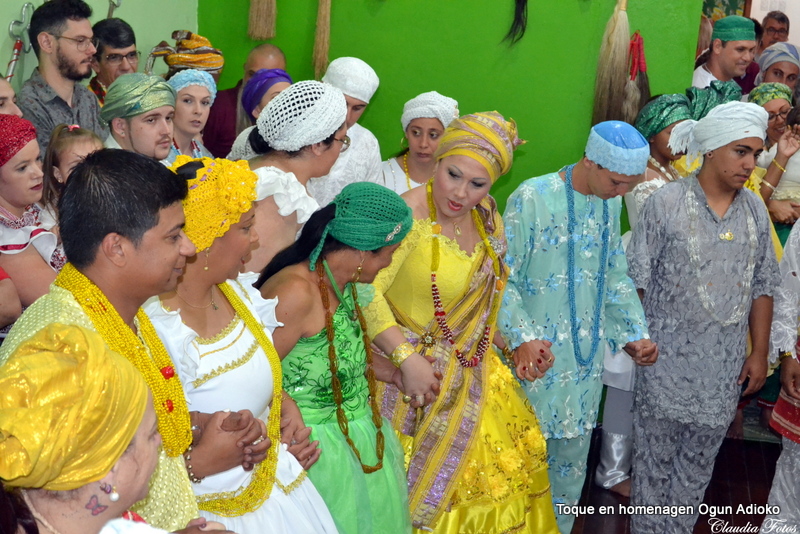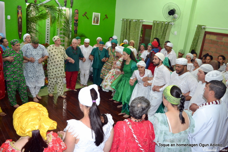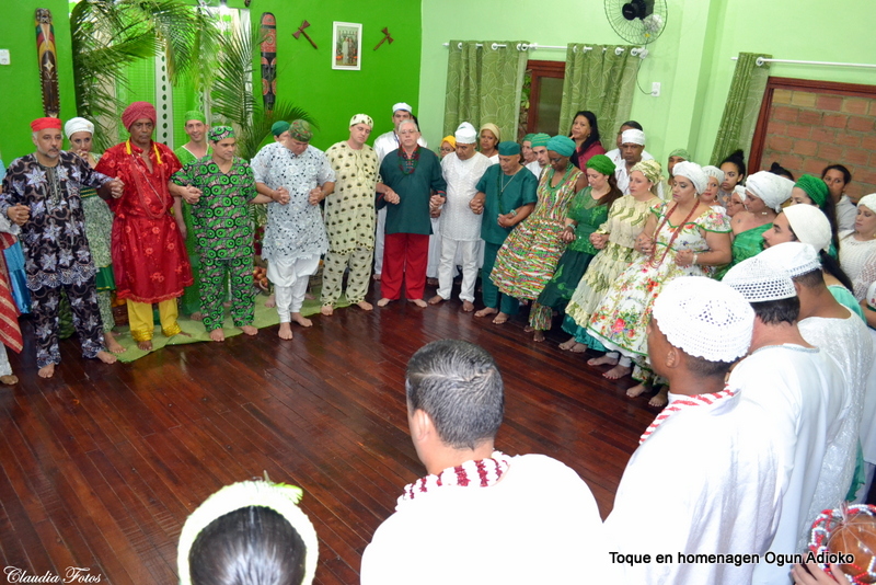 O batuque de comemoração dos 12 anos de Ogum Adioko e filhos foi um batuque que ocorreu obrigação de 4 pé, por isso ocorreu o rito de balança, onde de mãos dadas os participantes pedem que o orixá Xangô além de abençoar a obrigação também faça uma análise dela.