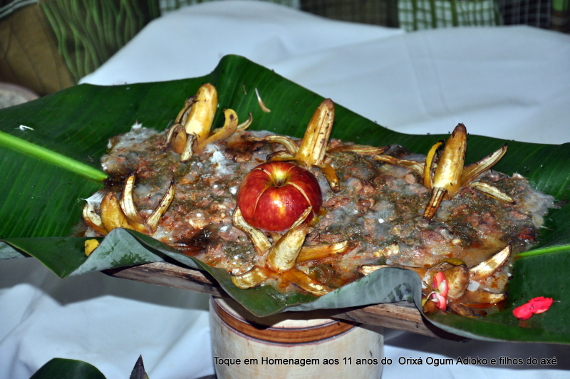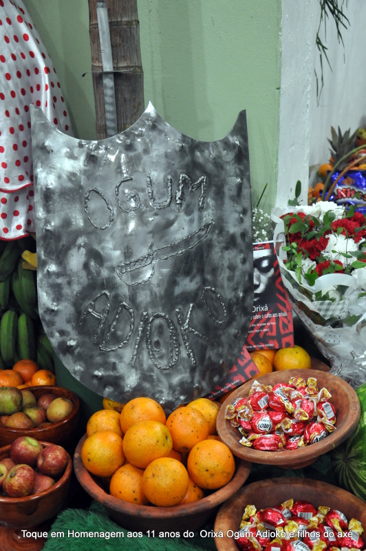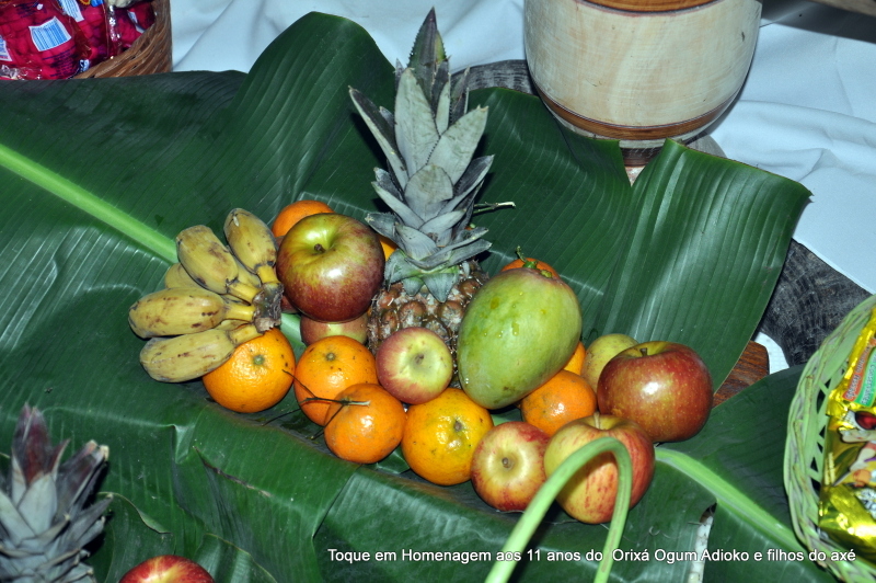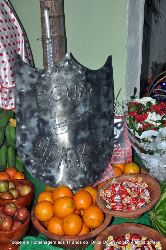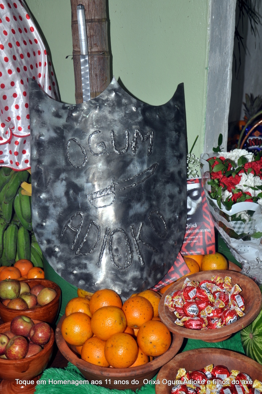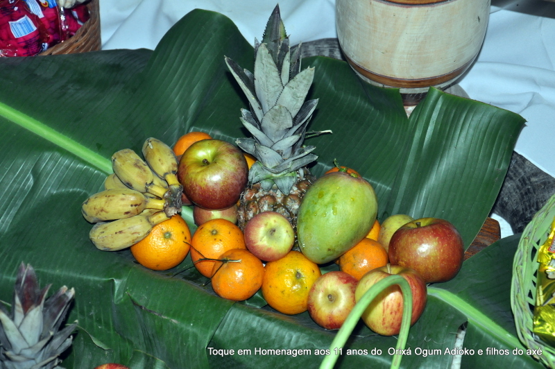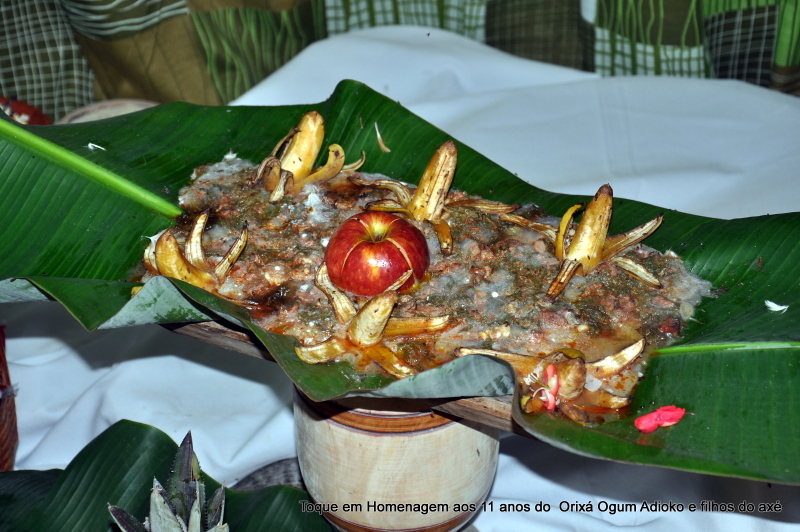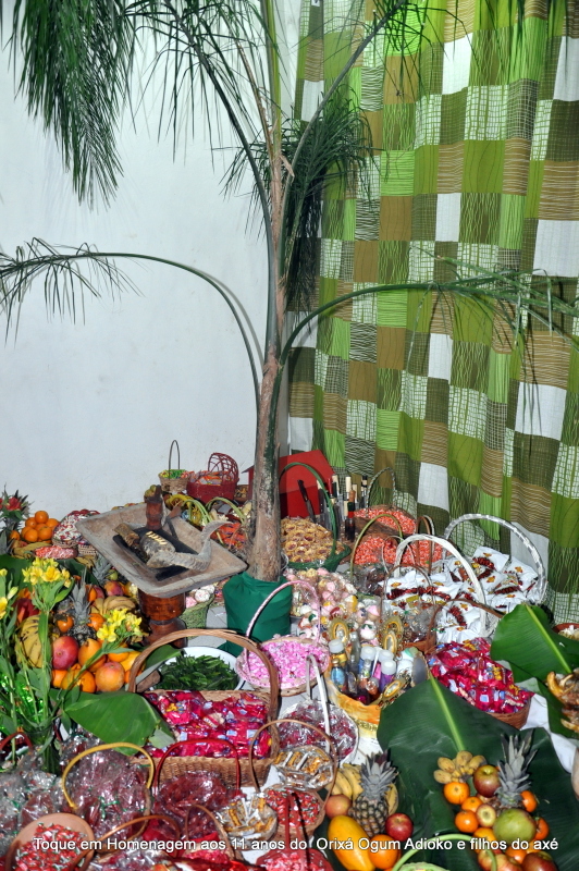 Especialmente nesta obrigação não foram somente flores e doces colocados dentro do quarto de santo também mudas palmeiras. Duas na entrada do quarto de santo e uma delas dentro. A palmeira possui uma grande simbologia para o culto africano, especialmente no culto ao orixá Ogum, pois representa a folha de mariwo que Ogum se veste, ao desfiar a folha do dendezeiro. Cobrir os espaços sagrados com folhas de palmeira é antes de tudo cobrir o espaço com o axé de Ogum, que fica não somente representado na decoração, mas está materializado aos que com coração limpo e respeito o conseguem ver.