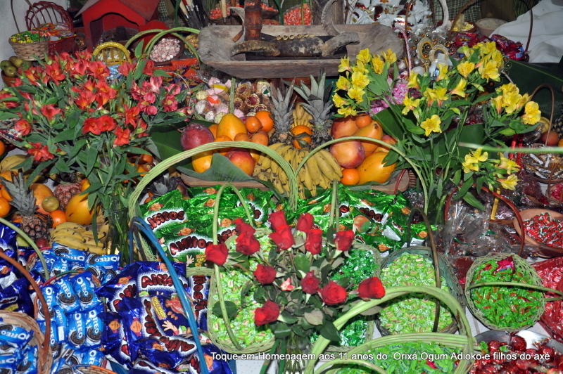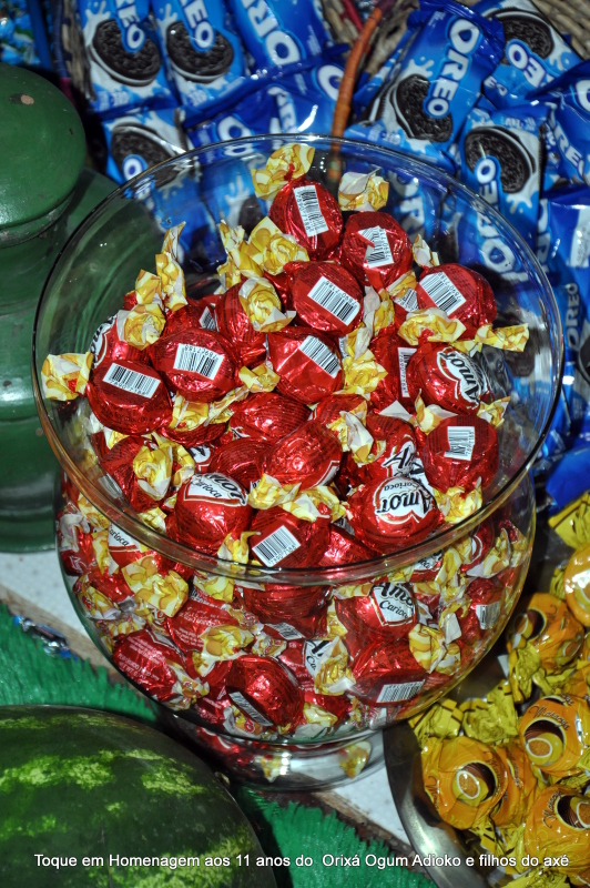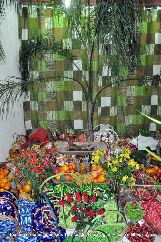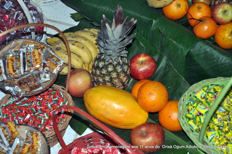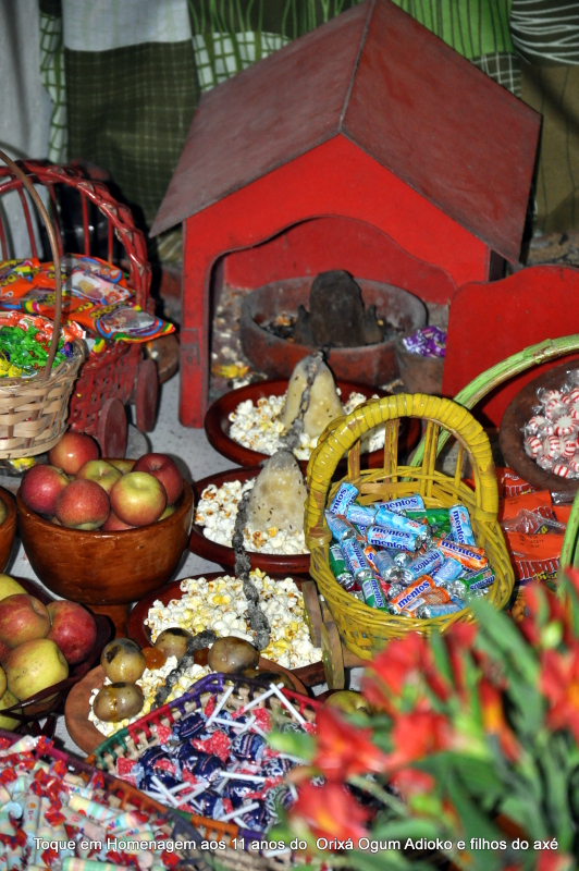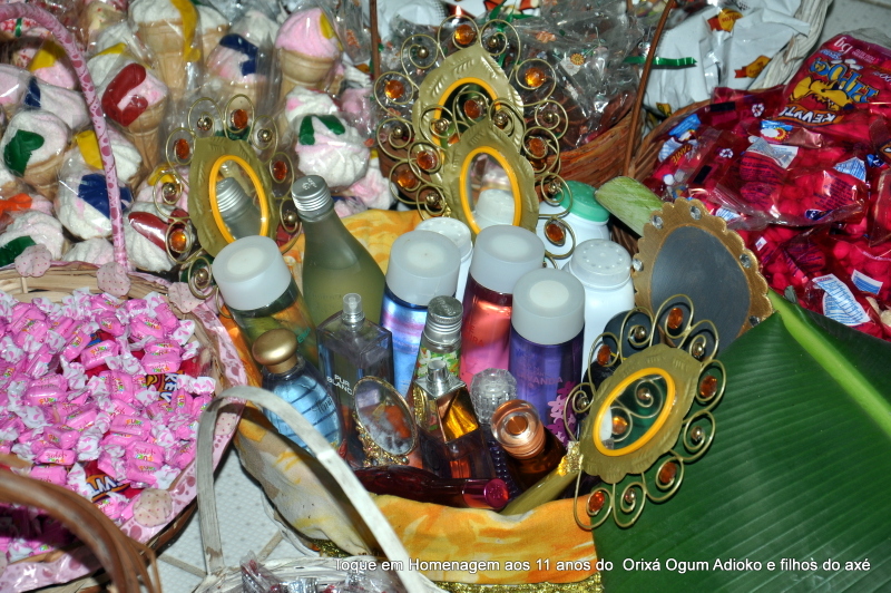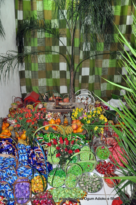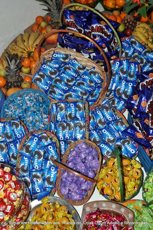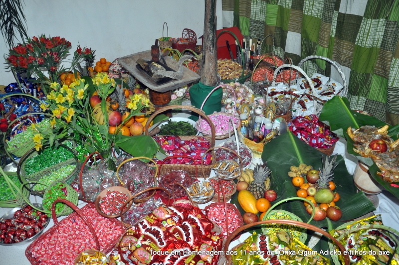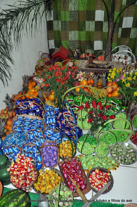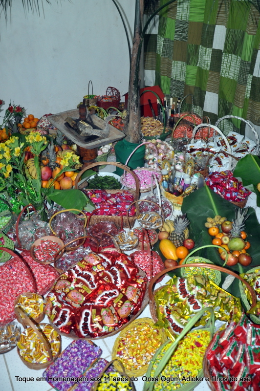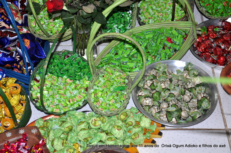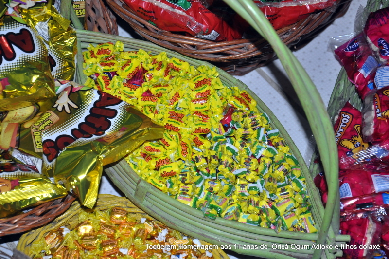Todos os doces que ficam na decoração são distribuídos durante a festa, aos orixás que se manifestam. Levar um doce, uma flor ou qualquer outra coisa que recebemos em um axé é ter o privilégio de levar junto uma parte do axé do orixá que distribuiu o seu axé, por outro lado ignorar um doce recebido, uma folha, ou uma flor, é desprezar um axé, por isso se não gostamos de um doce, devemos dar de presente a quem gosta, a quem precisa e principalmente aos que buscam o axé do orixá e não somente o valor doce, pois muitas vezes no axé mais simples é que conseguimos encontrar a verdade, encontrar a força que precisamos para seguir em frente.