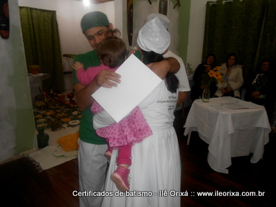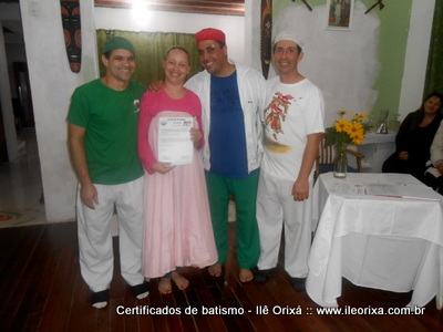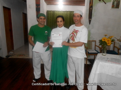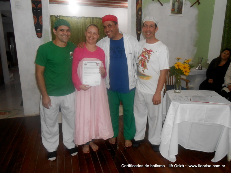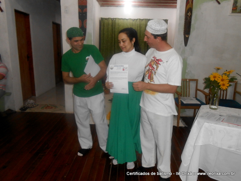 Foram entregues no dia 10/07 certificados de batismo realizados nos anos de 2013 e 2014. Da mesma maneira que outras tradições religiosas, nós de tradição africana também devemos registrar o que fazemos e mostrar que também formamos uma tradição. Ao entregar o certificado de batismo o Ilê Orixá cumpre um compromisso religioso e faz a sociedade reconhecer o espaço sagrado.