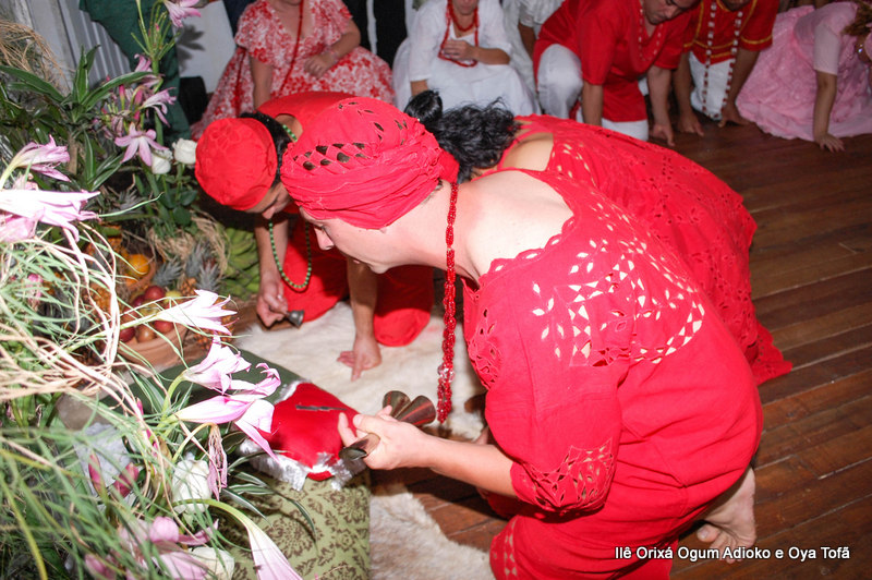 Antes de iniciar um toque aos Orixás ou mesmo realizar uma obrigação, nos ajoelhamos na frente de nosso quarto de santo para conversar com nossos Orixás, este ato, de nos comunicar com mo sagrado antes de iniciar uma obrigação muda um pouco em cada Ilê ou ainda entre cada iniciado.