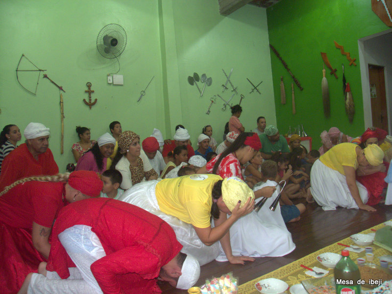 A mesa de Ibeji é um rito indispensável quando são assentados orixás, e dentre outras coisas é uma obrigação de saúde e misericórdia. Ao iniciar foi realizado o chamado aos orixás, tendo sido uma obrigação fechada para a família religiosa, que contou com a presença de dezenas de crianças que prestigiaram a obrigação.