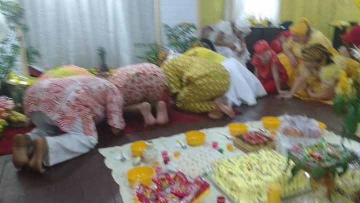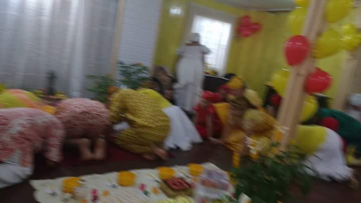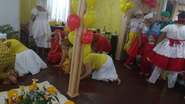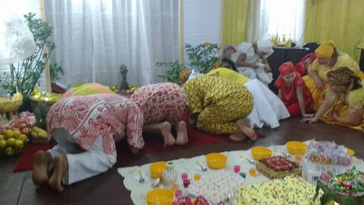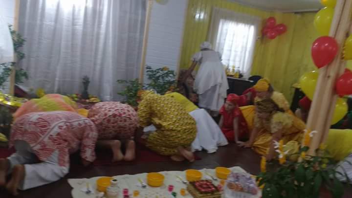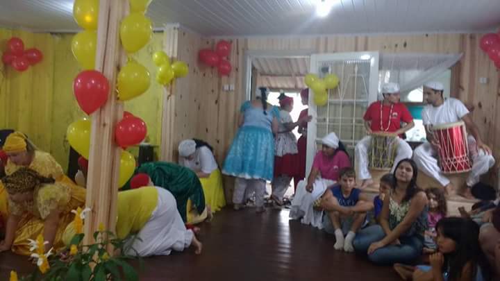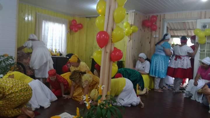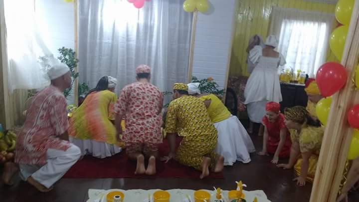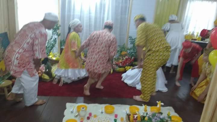 Antes da mesa Mãe Fabiana realizou o chamado aos orixás na presença dos filhos do axé Ilê Orixá, de seu Pai Alexandre de Oya e de seus padrinhos Jorge de Ogum e Pai Rone de Ogum.