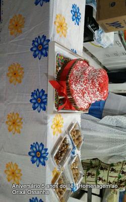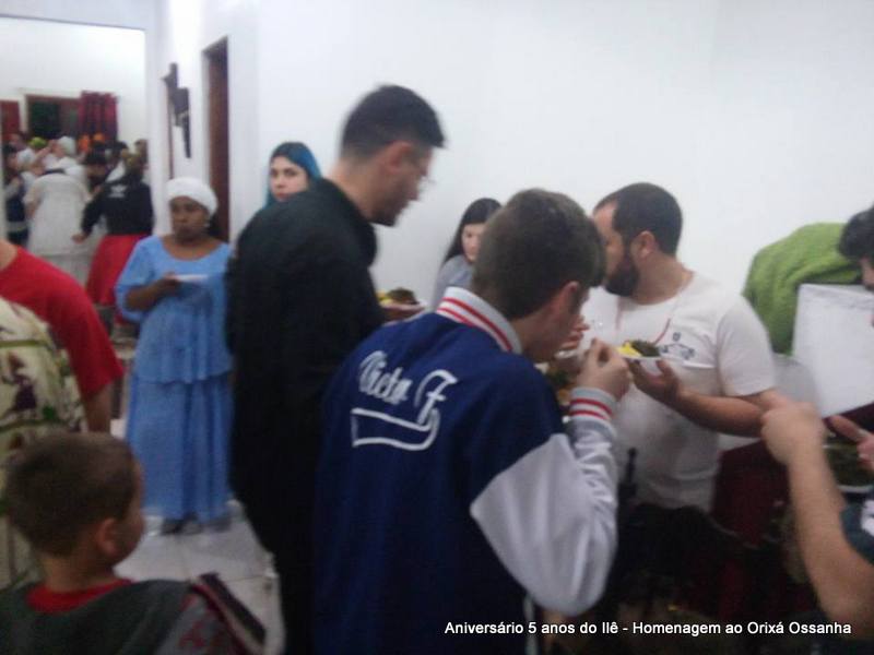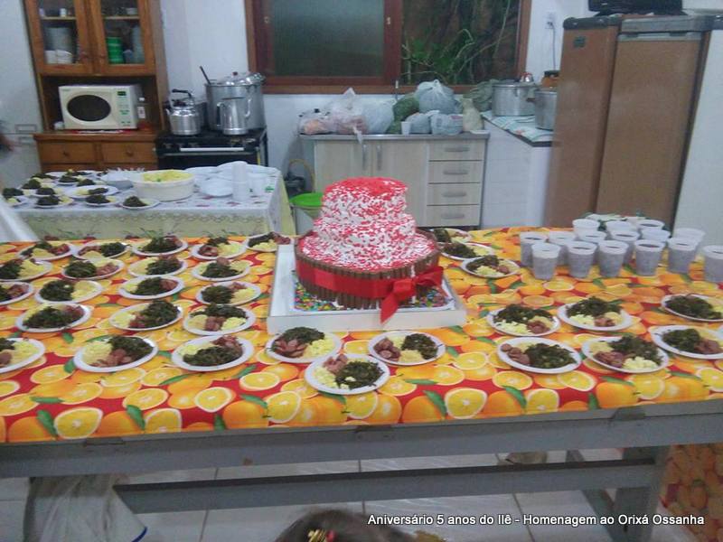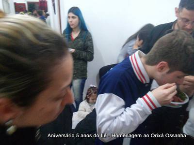 Na ocasião do xirê de comemoração foi servido axé de Ossanha para todos os que estavam presentes, além de ser servido o mesmo axé no quarto de santo. Todos degustaram de linguiça, couve, farofa com dendê e ovo cozido, oque forma um dos axés que servimos ao Orixá Ossanha, em momentos especiais solicitados por ele conforme consulta a Ifá.