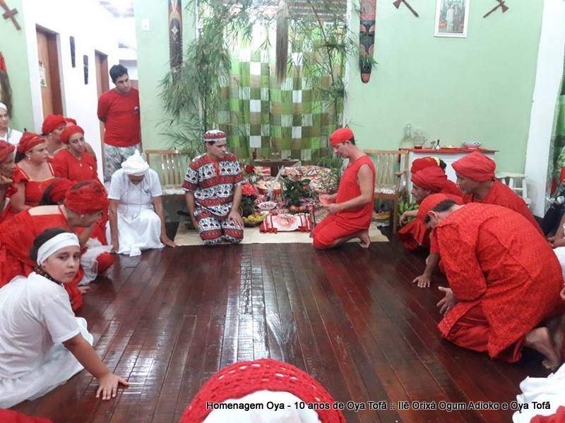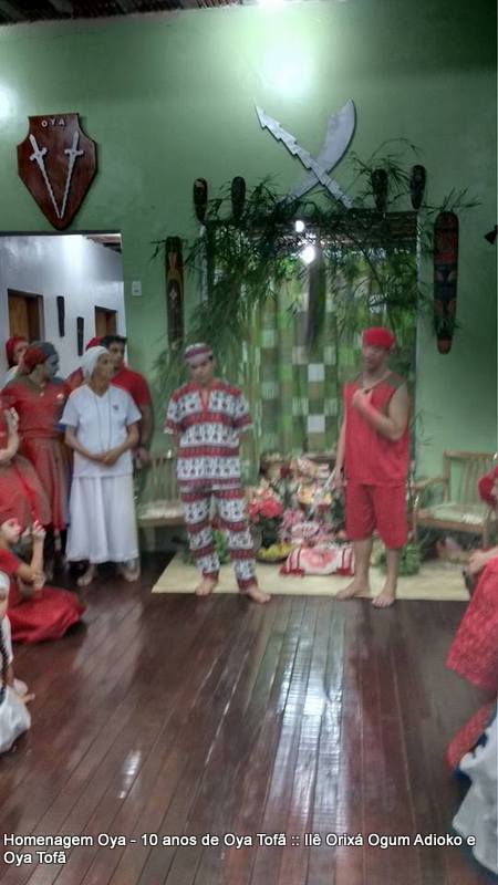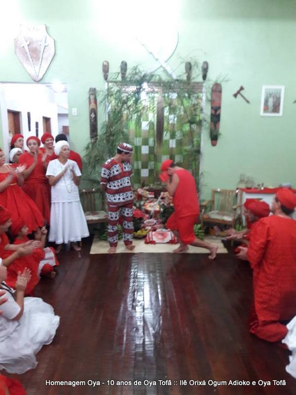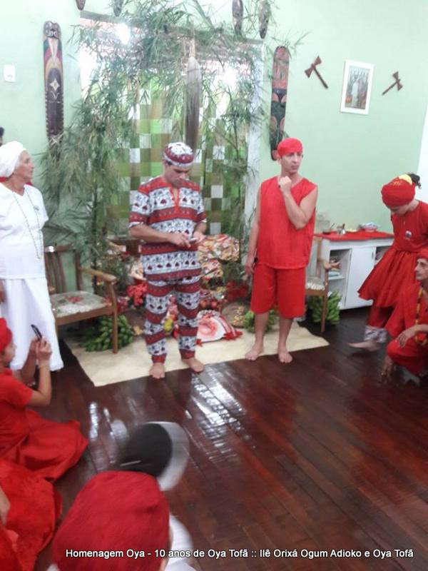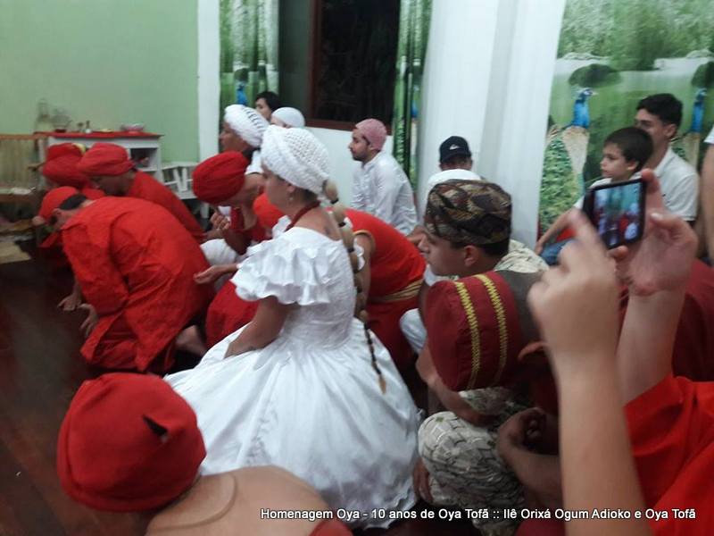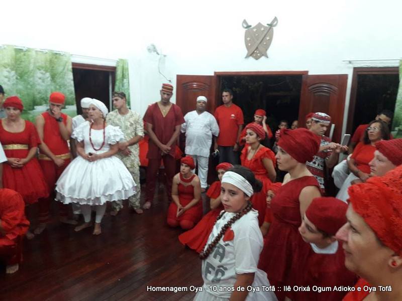 Instantes antes de iniciar o toque em comemoração aos 10 anos de Oya Tofã, Pai Alexandre de Oya reuniu o filhos do axé e agradeceu a dedicação de todos os que estiveram presentes durante muitos dias e horas para que a obrigação fosse toda ela de forma correta, como foi planejada, e para isso sempre se faz necessário conversar para aparar as arestas e destacar tudo que está positivo. Juntos somos mais fortes, e para se fazer religião sempre precisamos uns dos outros, niguém faz sozinho e todos em prol do mesmo objetivo.