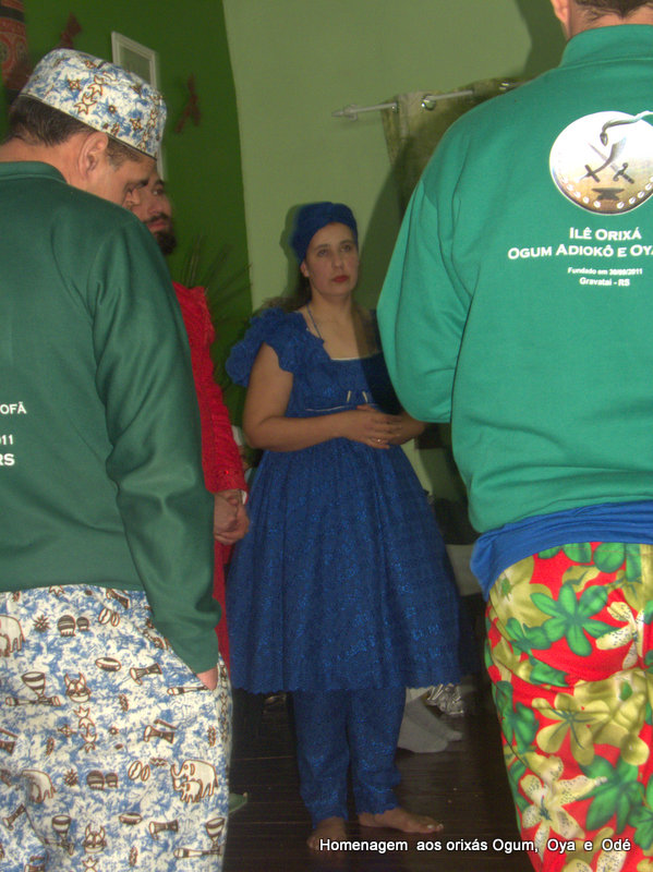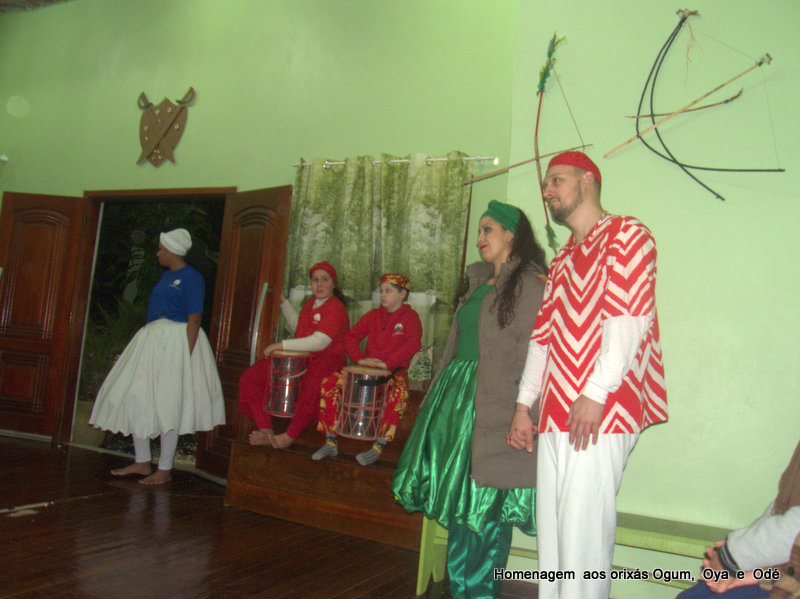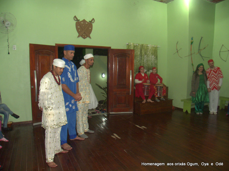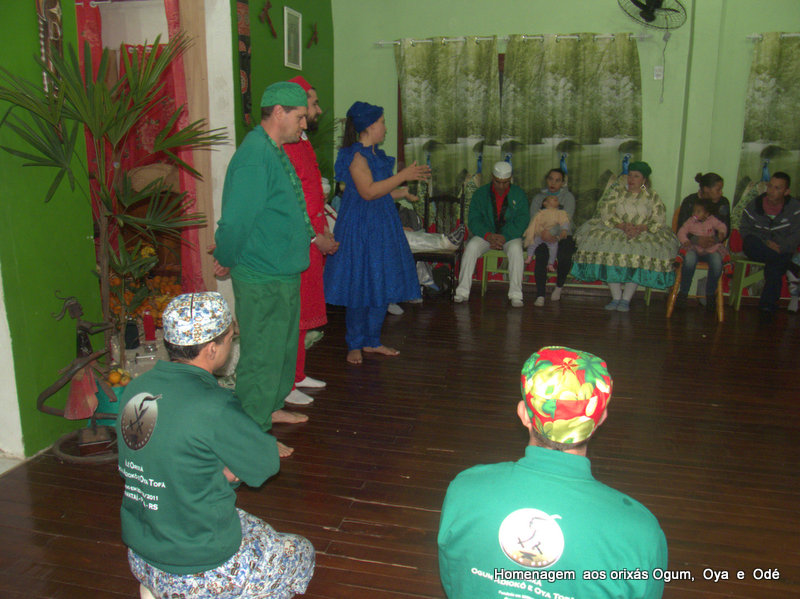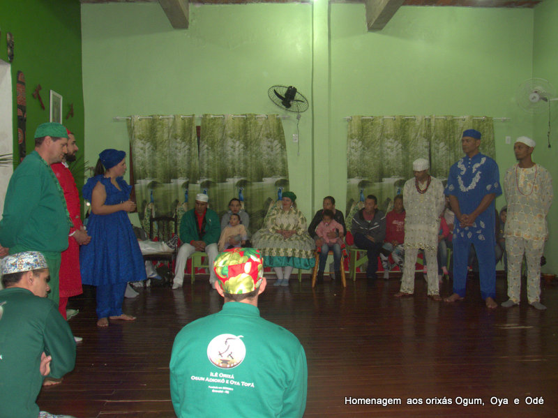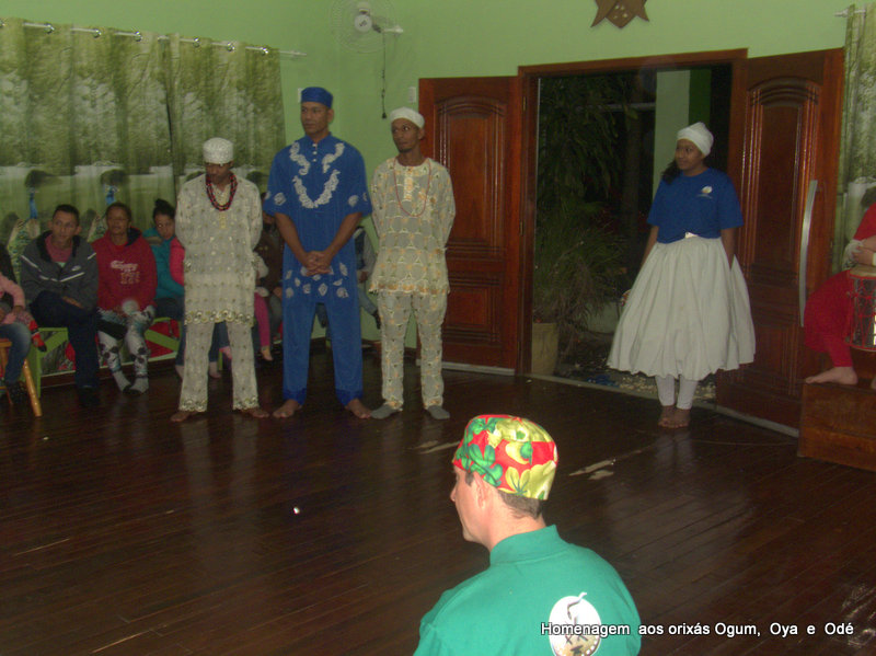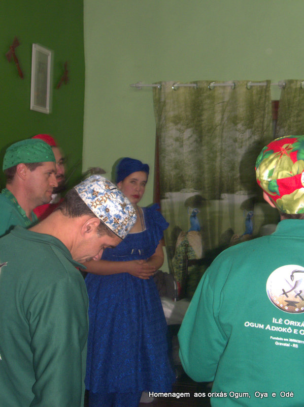 Momentos antes do início do toque em homenagem aos orixás Ogum Bolá de Volnei, Oya Cará de Antonio e Odé Bemi de Vanize, agradecimento foi a palavra de ordem. Agradeceram a carinho dos irmãos do axé, a acolhida, aos seus orixás e demais membros da família Ilê Orixá.