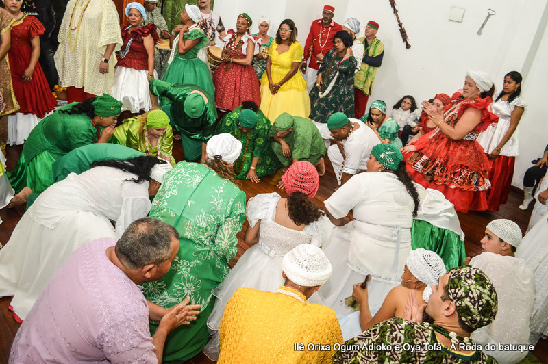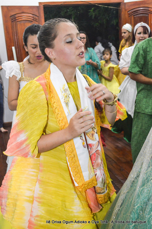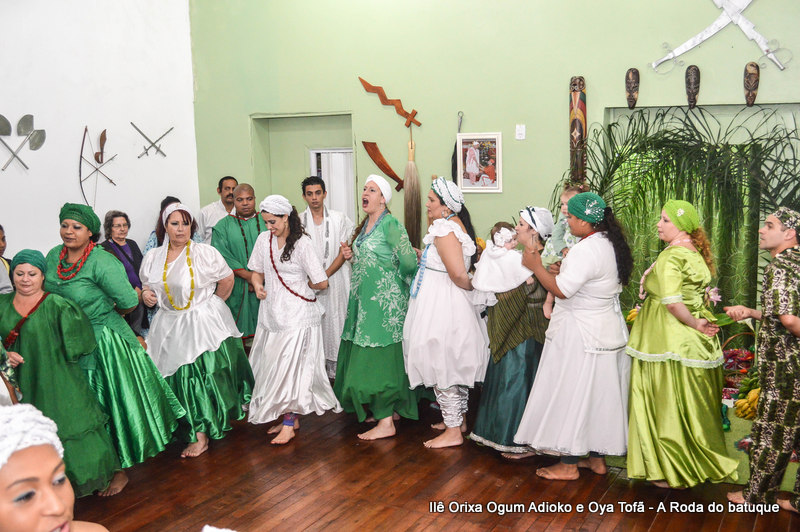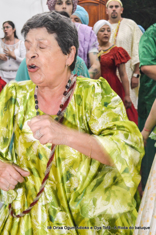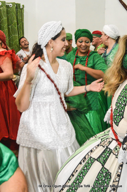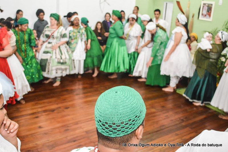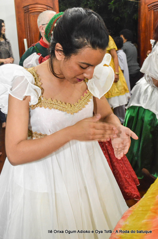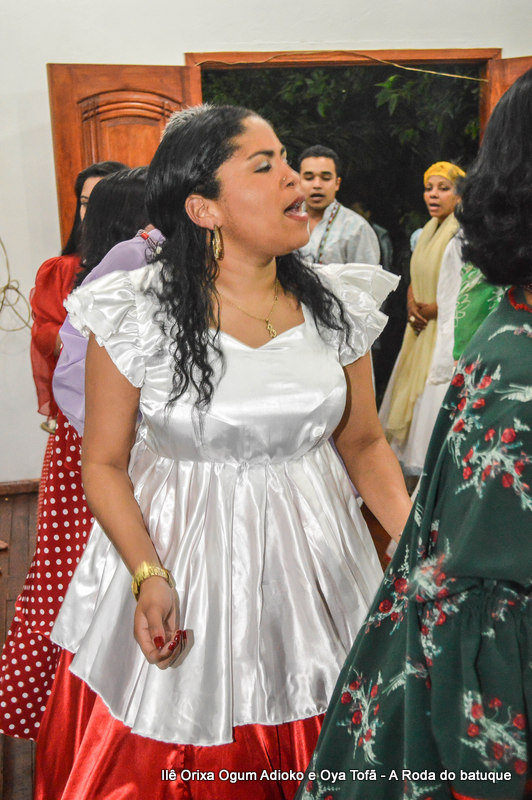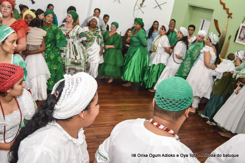 Na religião os cânticos e a dança estão pesentes em todos os momentos, faz parte da ritualística, é onde os Orixás se manifestam, contam seu mito, sua história. É na roda que nos humanos temos a oportunidade de interagir com o sagrado. Temos a oportunidade de estar junto aos Orixás.