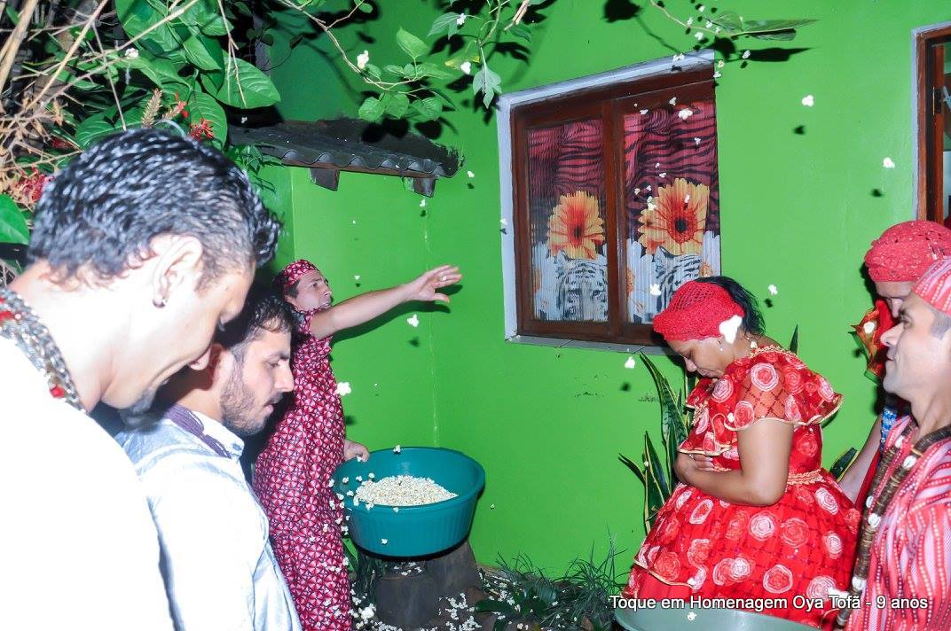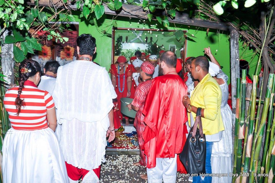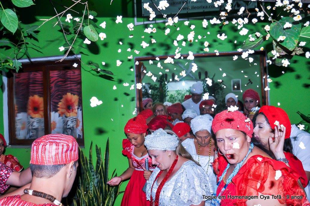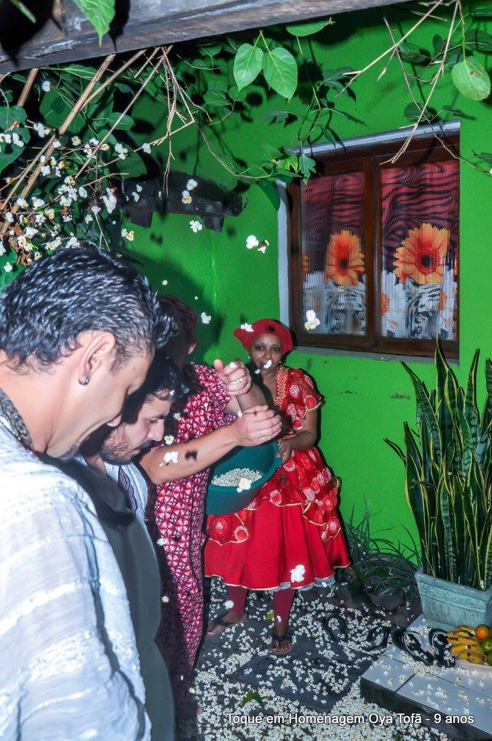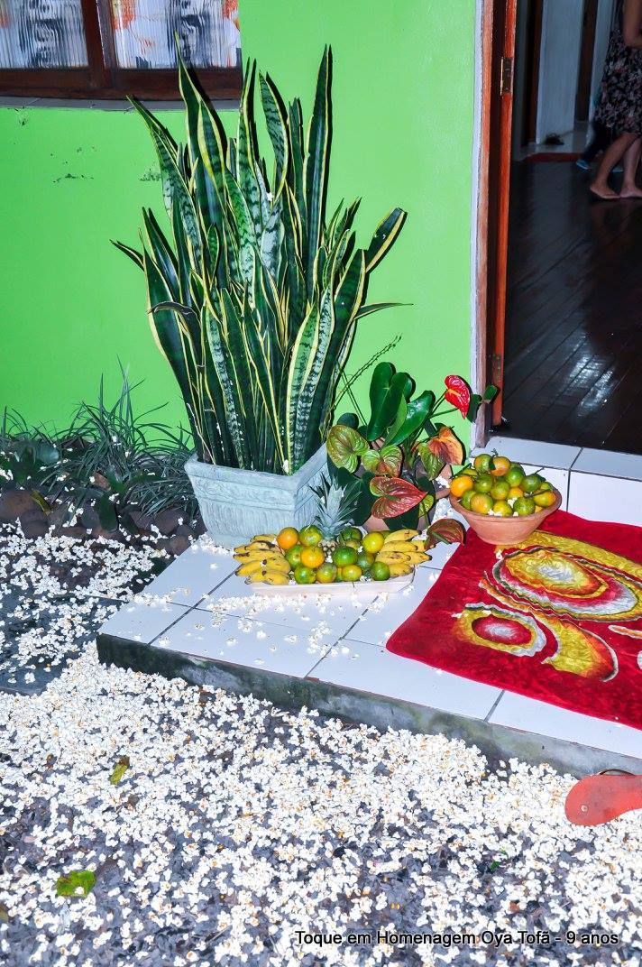 A natureza é morada dos orixás, de onde vem sua força e seu axé, por isso nada mais correto do que fazer toda a decoração integrada a este espaço. Não existe orixá sem folha, que as folhas utilizadas nesta decoração sejam para levar saúde e axé a todos, é o que deseja Pai Alexandre de Oya Tofã e Pai Ronie de Ogum Adioko.