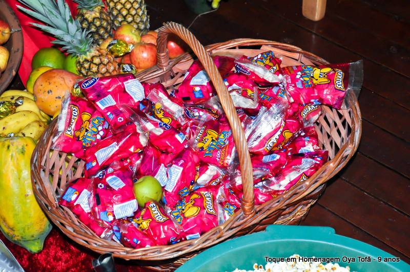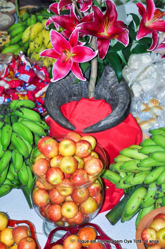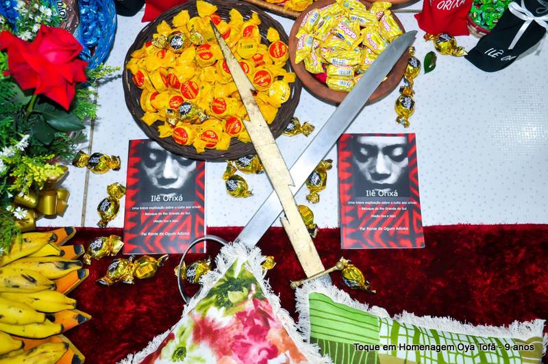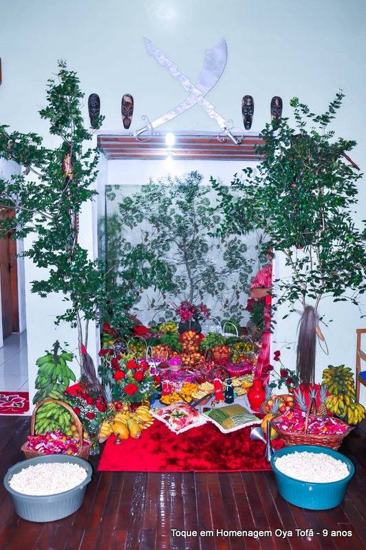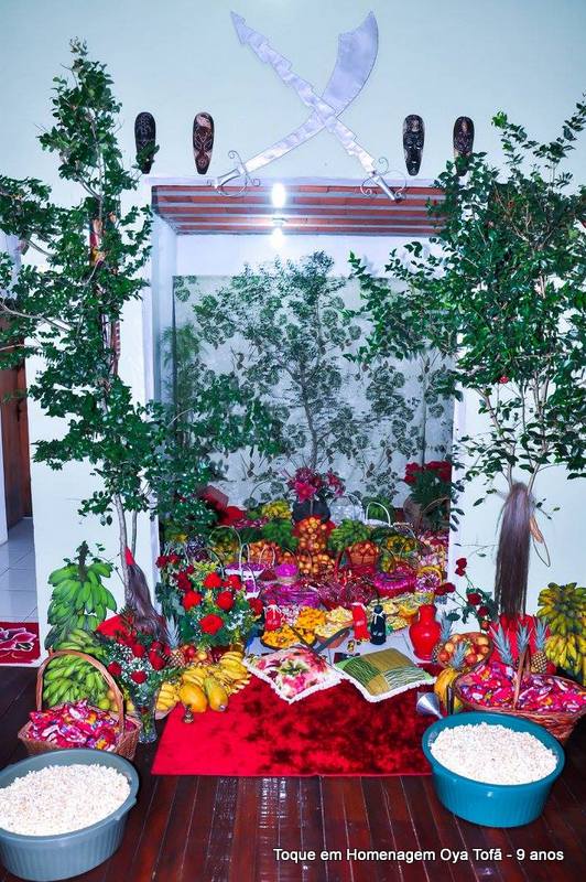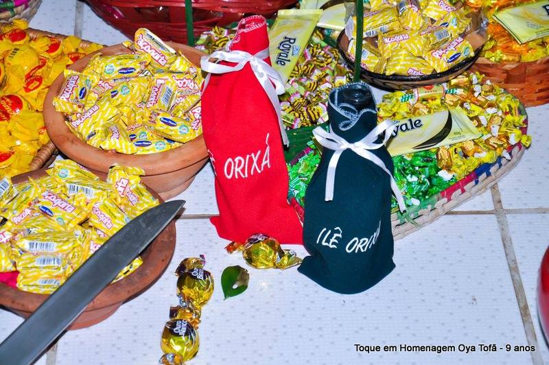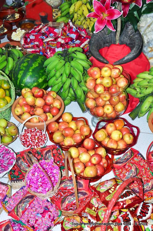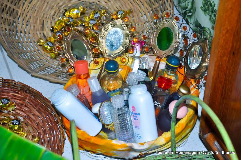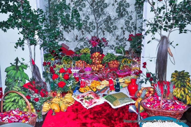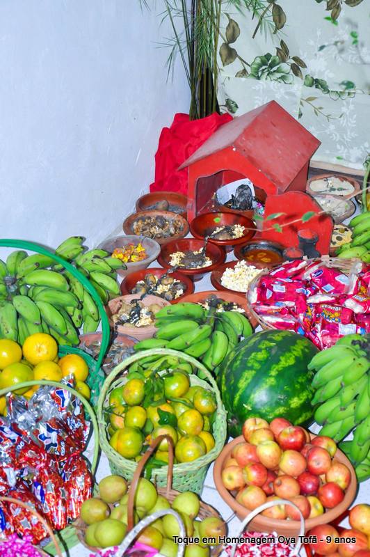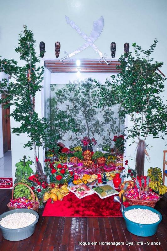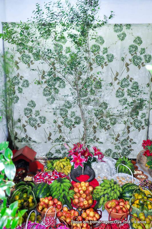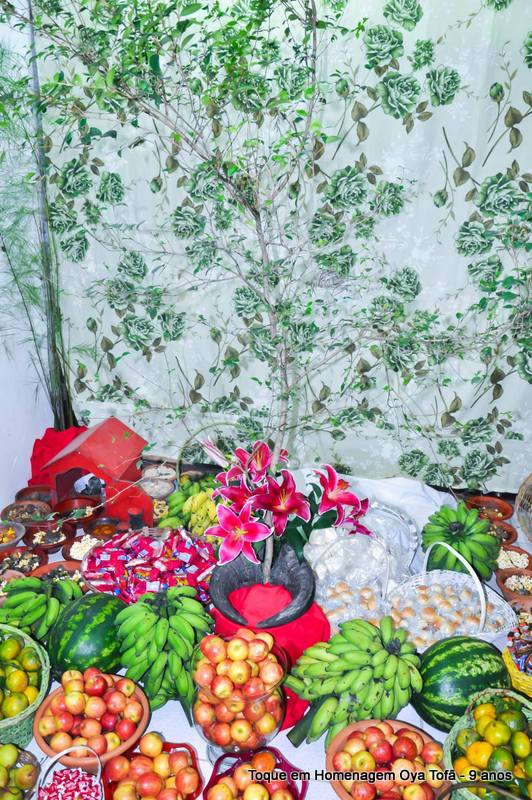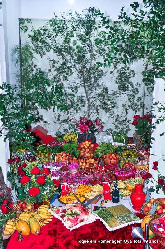 Sempre é bom registrar, pois é uma forma de lembra no futuro o que foi feito, como estava e também poder ver a evolução de todos. Nesta página está a decoração de como estava o quarto de santo na noite de comemoração dos 9 anos de Oya Tofã e seus filhos, onde se pode perceber o carinho de todos e a grande fartura que estava presente durante a festa.