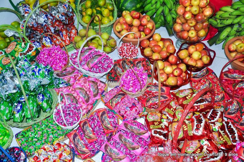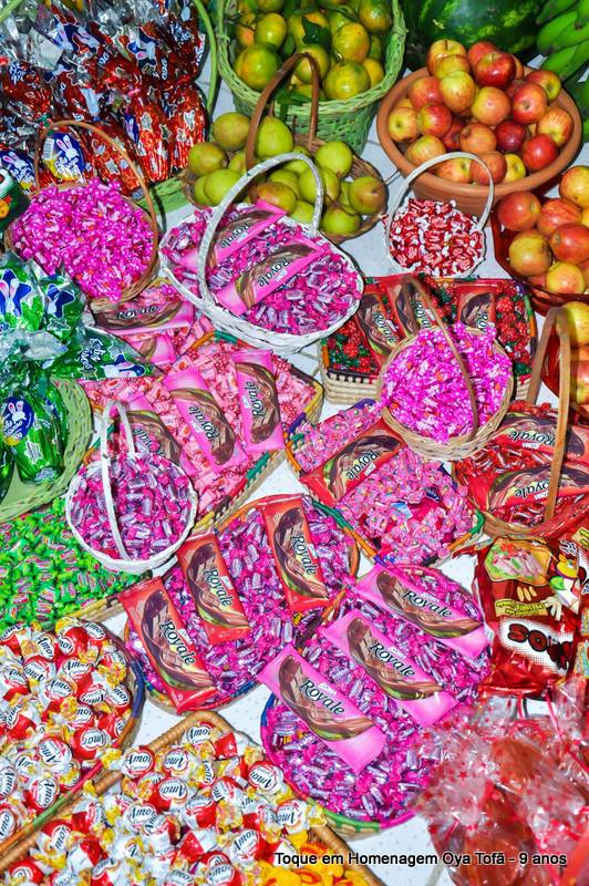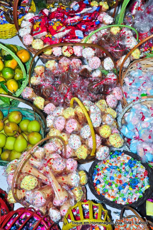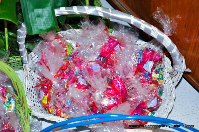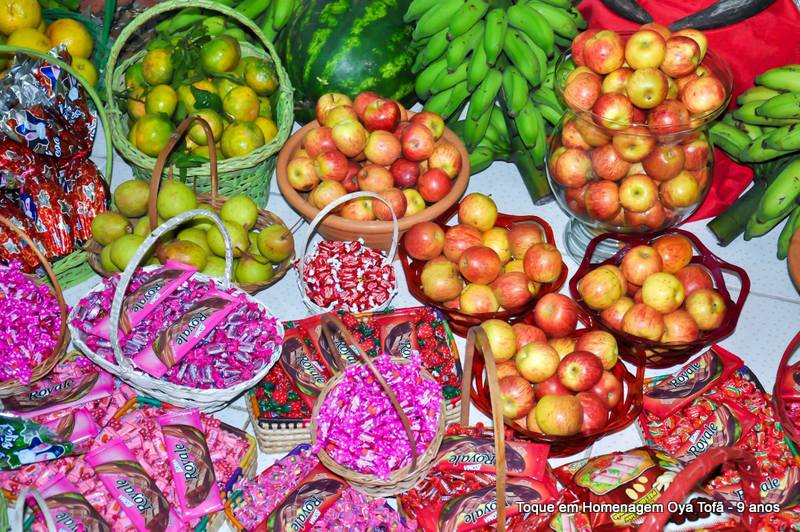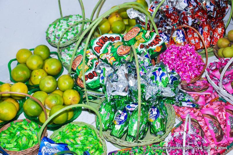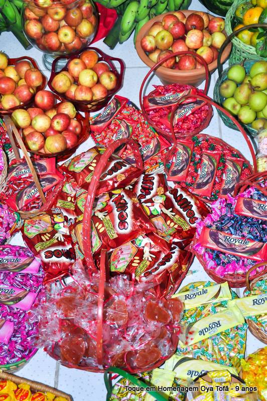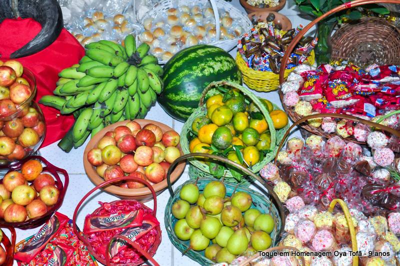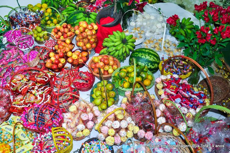 Todo alimento é axé, e quanto mais axé se distribui mais axé se recebe, orixá é vida é fartura, é alegria, união, paz e amor. Aos fazer a distribuição de doces e frutas estamos distribuindo o axé de nosso orixá, da mesma quem recebe, está recebendo este axé.
