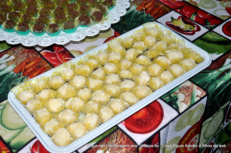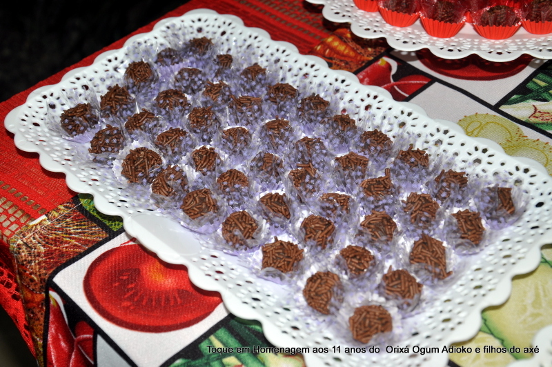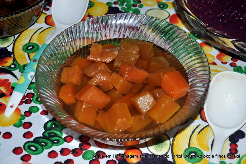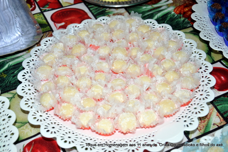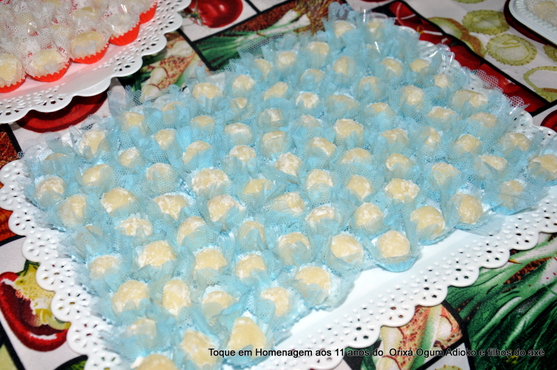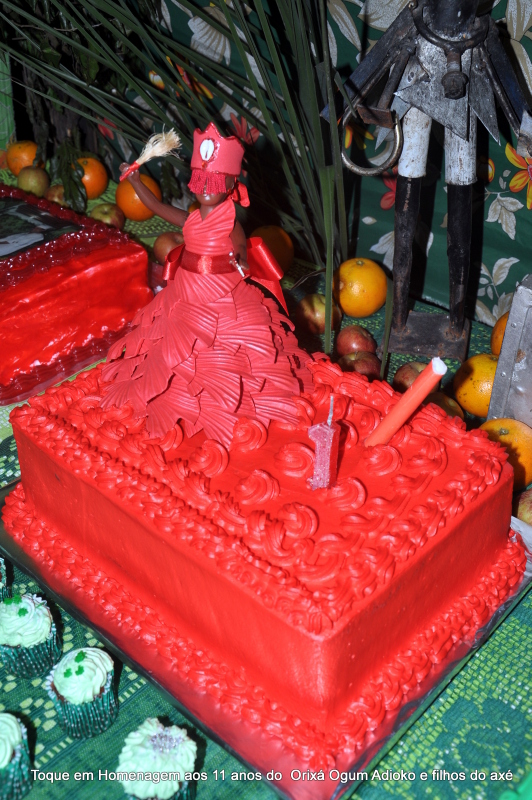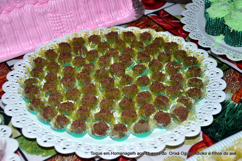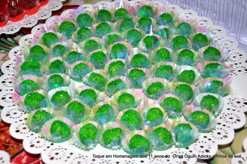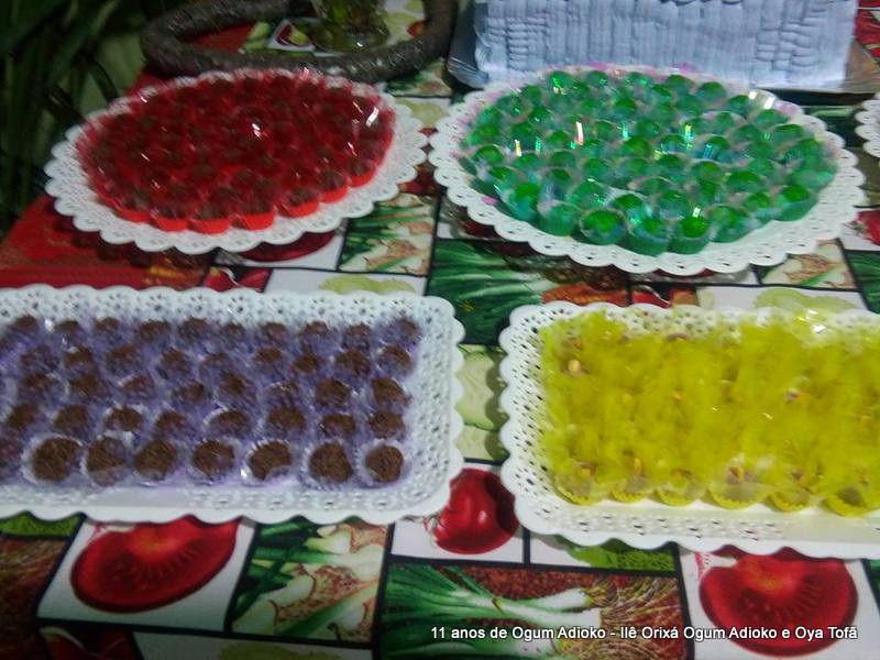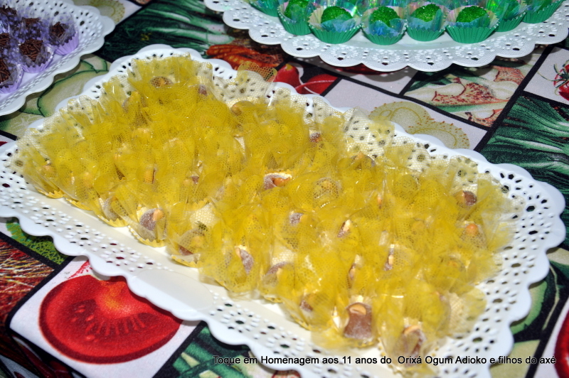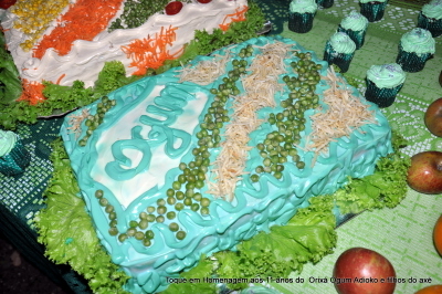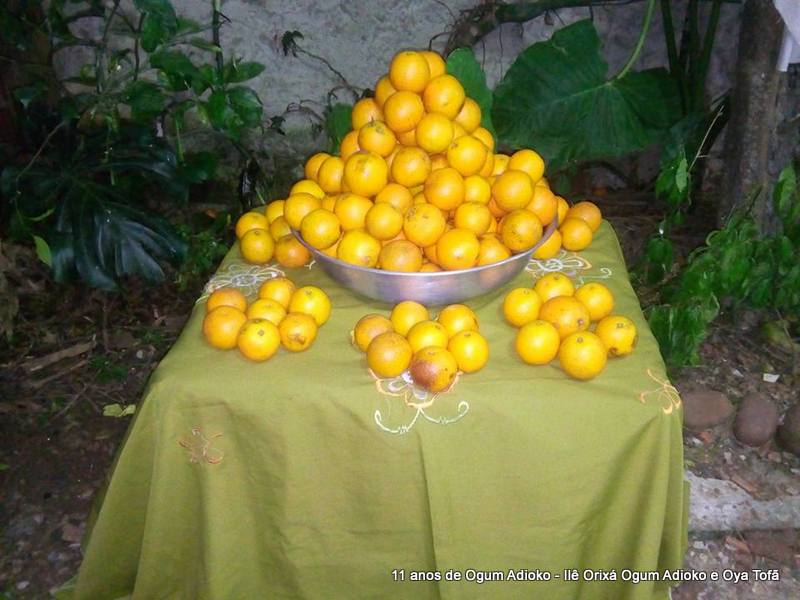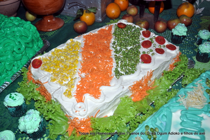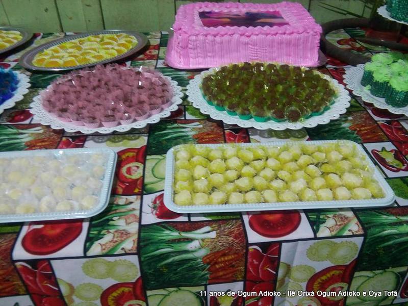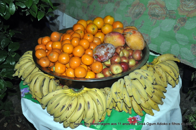 A decoração das mesas associada ao verde da vegetação que existe no Ilê Orixá, além de muitos galhos que são utilizados como parte da decoração faz com que nos sintamos com uma festa no meio da mata, na terra, na presença de todos os orixás, pois orixá esta associado a natureza, não existe orixá sem folha.
