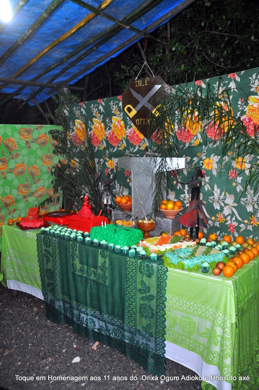 Que cada folha que estava presente na decoração seja para trazer axé de saúde a todos os amigos e filhos que estiveram presentes prestigiando a obrigação e que Ogum esteja sempre a frente protegendo a todos.