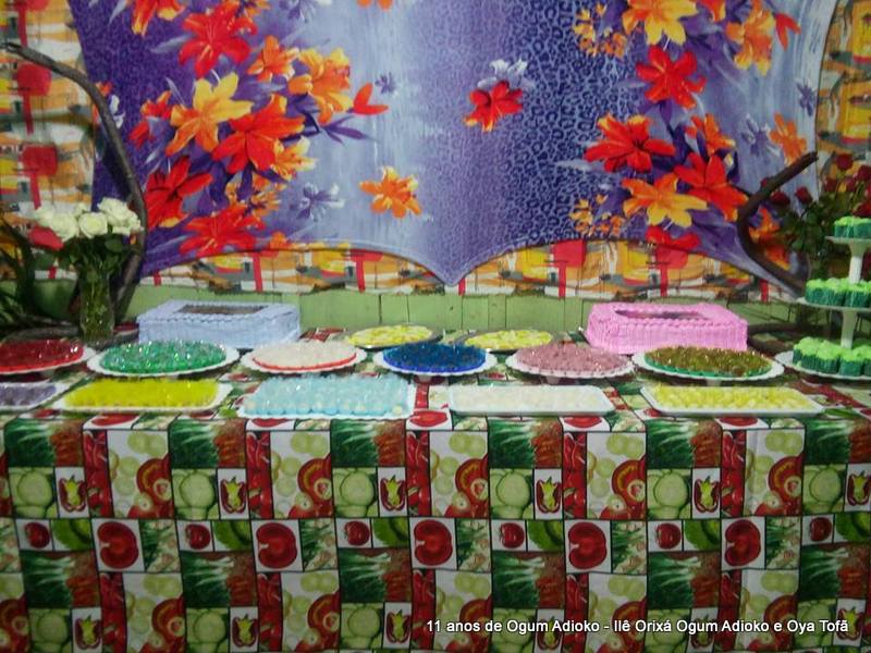 Cada parte do espaço externo do Ilê em dia de festa é decorado para um orixá, para lembrar a sua energia e evidenciar o seu axé. Isso é uma forma de homenagear o orixá e também de se perceber o seu axé nos adornos presentes, nos salgados e doces que estão sendo servidos. A decoração das mesas externas é realizada por Pai Alexandre de Oya acompanhado de alguns filhos do axé que o auxiliaram.