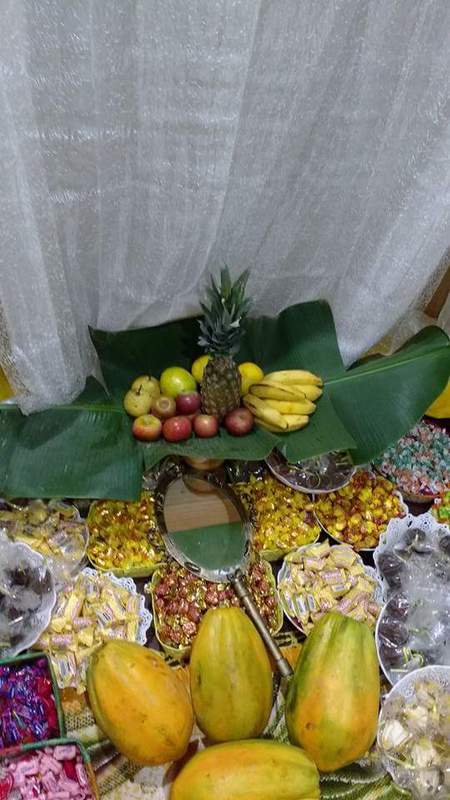 Na decoração é visível todas as demonstrações de carinho que estavam presentes em cada detalhe, um dos lados da entrada com laranjas representando a sua origem religiosa, já que Mãe Fabiana de Oxum Dioni foi iniciada por Pai Carlos de Ogum e do outro lado da entrada maças, representando a sua atual bandeira, já que está sob a bandeira de Pai Alexandre de Oya Tofã.