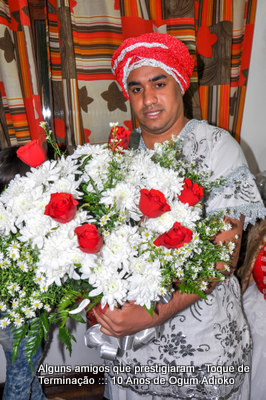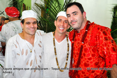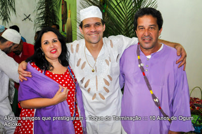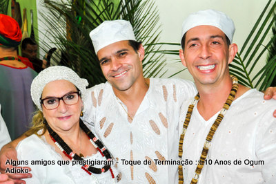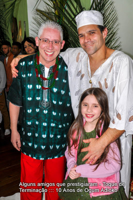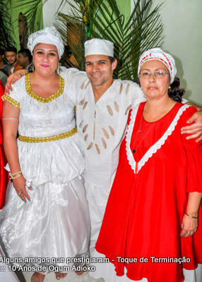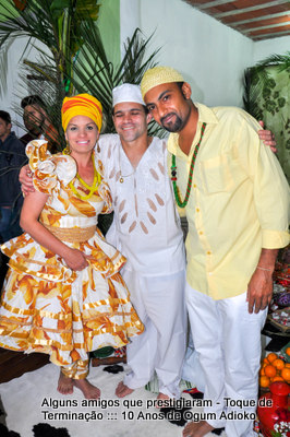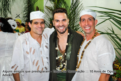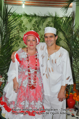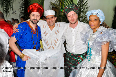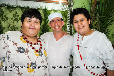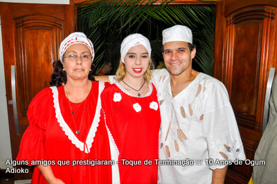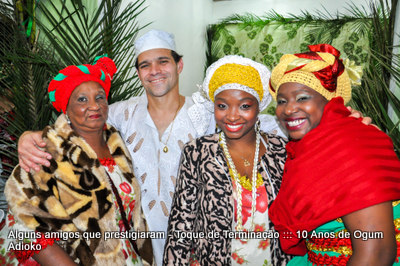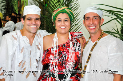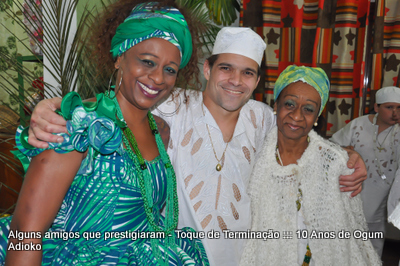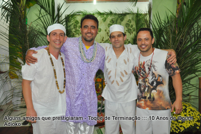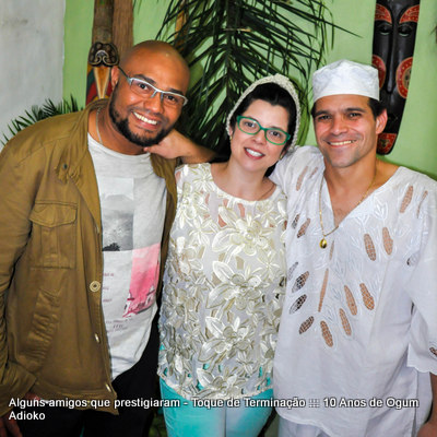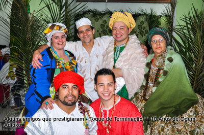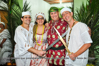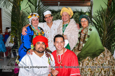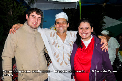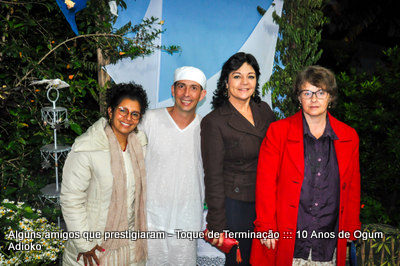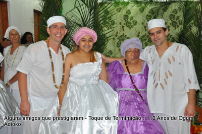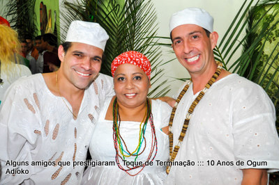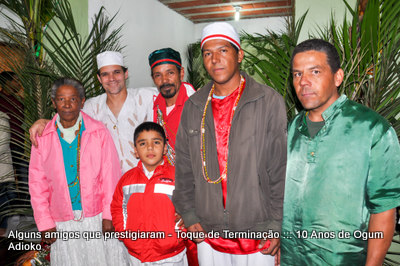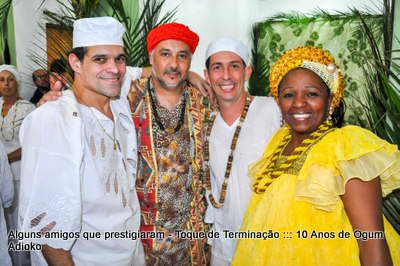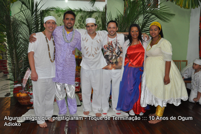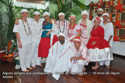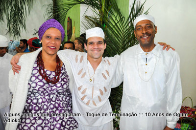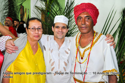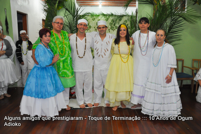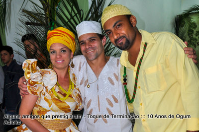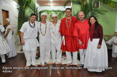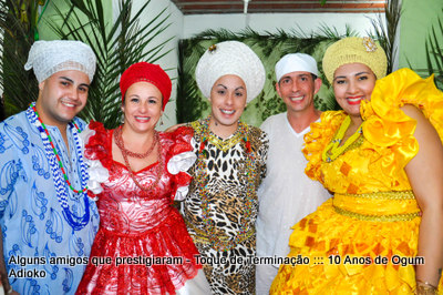 Foram muitos os amigos que prestigiaram as comemorações dos 10 anos de Ogum Adioko de Pai Ronie, o que torna impossível citar o nome de todos, mas cada um que esteve presente sabe que a festa foi formada por amigos que sem dúvida fazem parte desta caminhada. Amigos que estiveram durante a noite do dia 24 de outubro, que romperam distâncias para estar presentes, se sintam todos agradecidos por estarem presentes em um momento tão especial que não existem palavras para descrever.