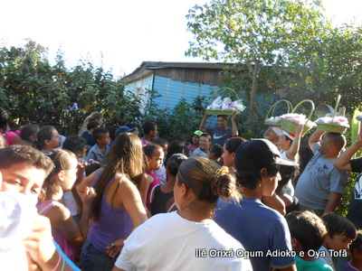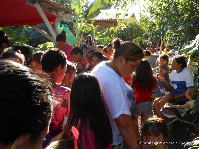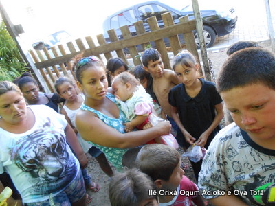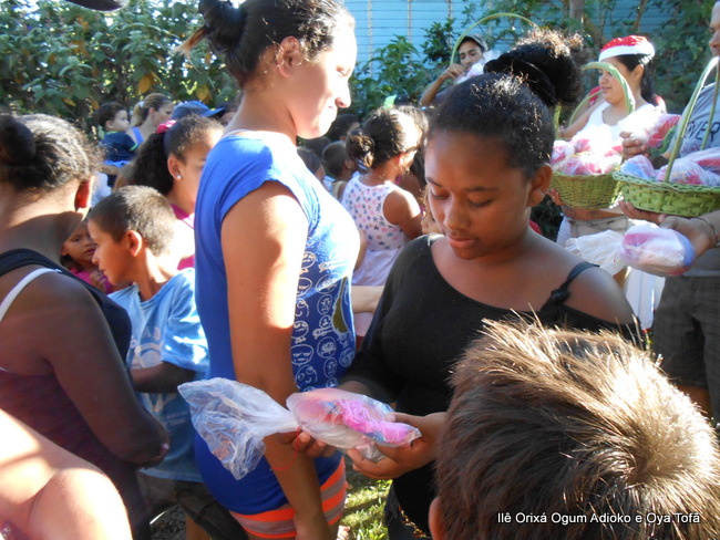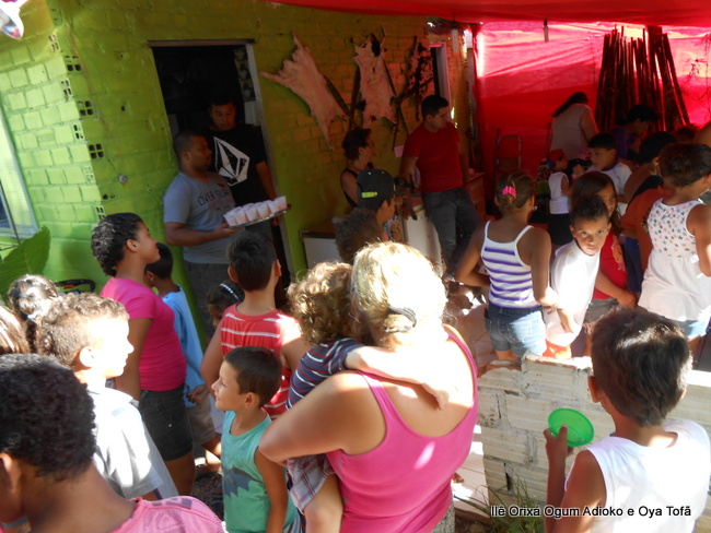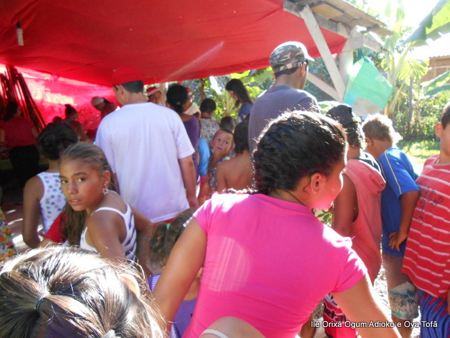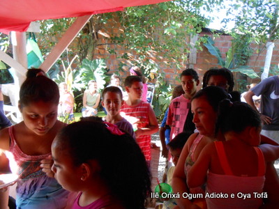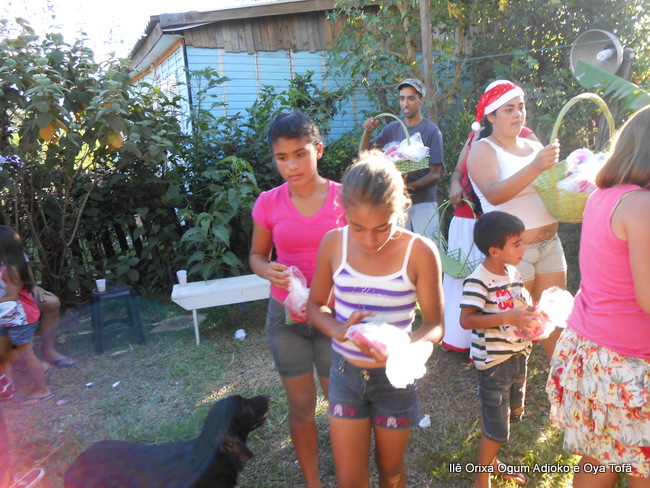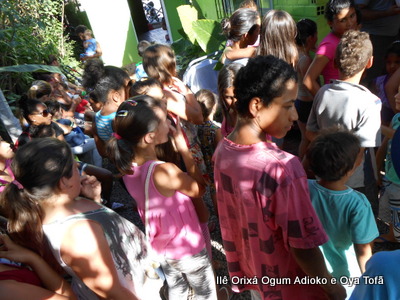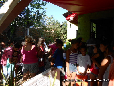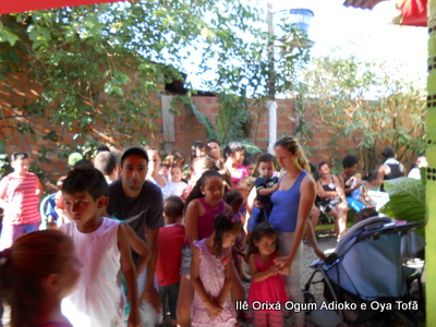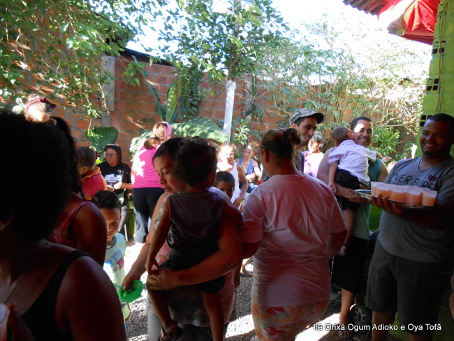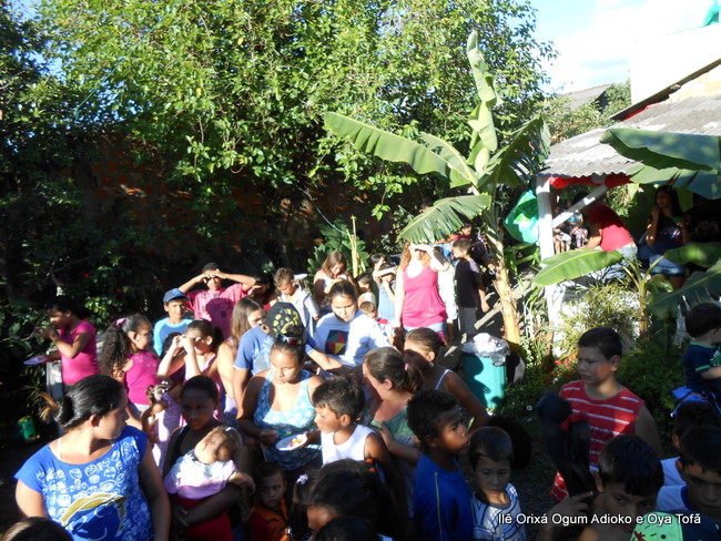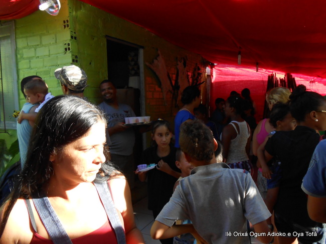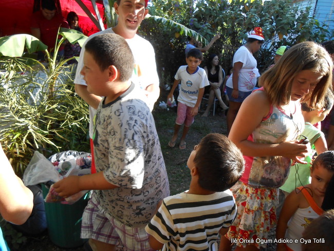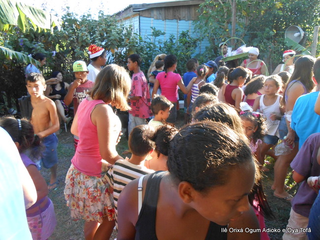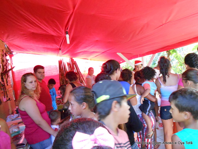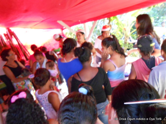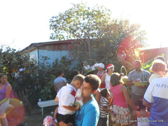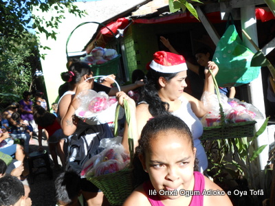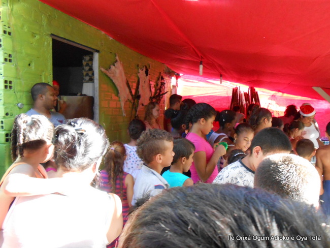 Mas sem dúvida o momento mais esperado por todas as crianças era a hora que Papai Noel chegasse para distribuir brinquedos. Foi um momento onde todas esperavam atentas. A mãe de uma criança destacou que um nenê que estava deitado em um carrinho, era a sua primeira saída para a rua, tinha apenas 15 dias de vida, e estava lá na sede do Ilê. Isso é confiança, é acreditar que um terreiro é um local de harmonia e de segurança para seu filho recém nascido.