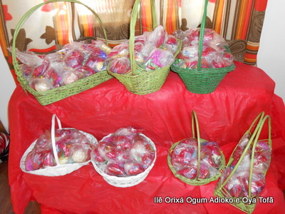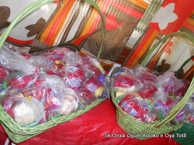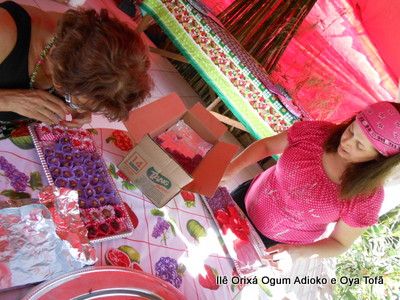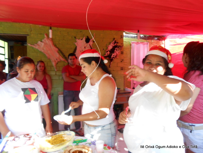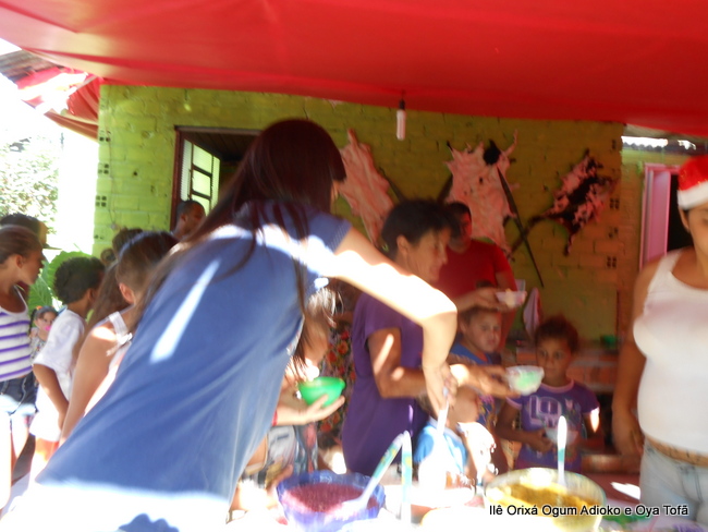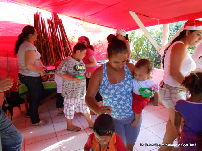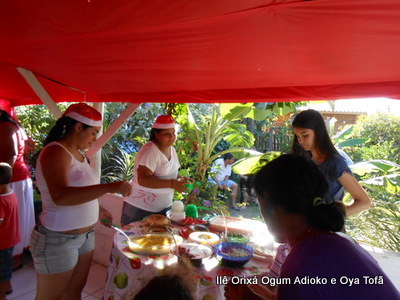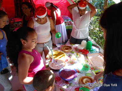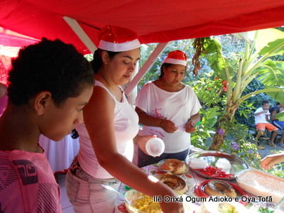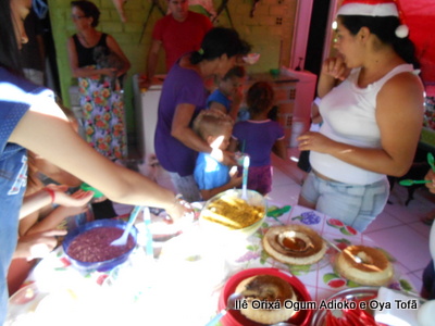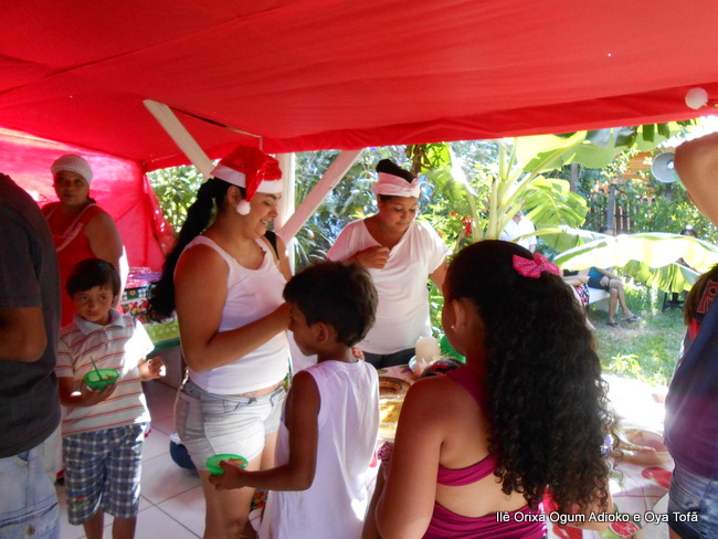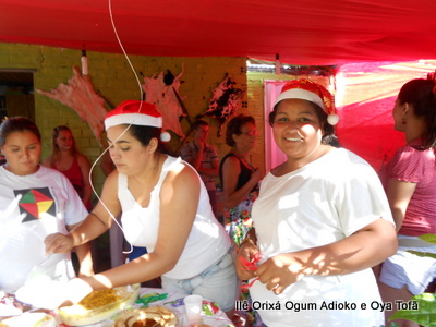 Pai Ronie de Ogum e Pai Alexandre de Oya, agradecem em especial a Mãe Cristina Wexel de Oya, que trouxe uma grande cesta de doces, que foram somados aos demais e distribuídos a comunidade que esteve no Natal Social.