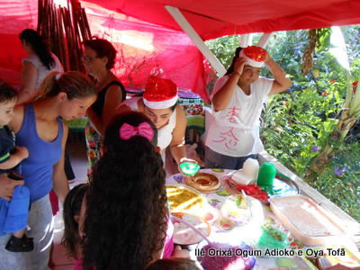 Agradecem ainda aos filhos do axé que mesmo não sendo uma atividade de cunho religioso, contou com a presença de vários membros da família religiosa: Ana de Orumilaia, Elisângela de Oya, Edgar de Xangô Godô, Felipe do Ogum, Michele de Obá, Marcelo do Amaral de Xangô, Gisele de Iança, Alessandra de Iemanjá e Claúdia de Iemanjá, e aos amigos Fernanda Henrich de Xangô, Júlia de Oya, Diego de Oxalá e Rosa, que auxiliaram a servir cada uma das crianças com muita atenção, dedicação e carinho.