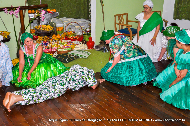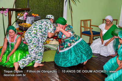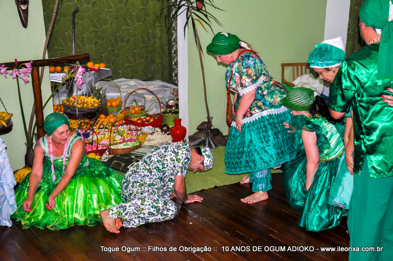 Durante o Toque em Homenagem ao Orixá Ogum, foram apresentados os filhos que cumpriram preceitos de assentamento de seus orixás no dia 08 de outubro, mesma data que Pai Ronie cortou para os seus orixás. Foram assentados orixás dos filhos: Adriana de Iansã (Sapucaia) , Alessandra de Iemanjá (Sapucaia) , Cátia de Iansã (Capão da Canoa), Elizangela de Oya (Gravataí)e Edgar de Xangô (Gravataí), que se prepararam desde o início do ano para esta obrigação, com reuniões e oficinas para terem condições de realizar a obrigação com pleno êxito e sucesso.