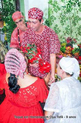 No Ilê Orixá todas as obrigações são centralizadas, havendo dois momentos para que os filhos cumpram seus preceitos junto a seus orixás, durante obrigação de Oya Tofã ou de Ogum Adioko, preferencialmente os filhos de Oya Tofã sempre cumprem estes preceitos durante a obrigação de Oya e os de Ogum durante a obrigação de Ogum, desta forma se organizam melhor as obrigações além de se centralizar, em momentos específicos. Nesta obrigação cumpriram preceitos aos orixás, os filhos de Oya Tofã: Jorge de Ogum (bori de 4 pé em 31 março), Volnei de Ogum (mieró em 2 abril), Letícia de Iansã (ariribó em 02 de abril), Adriano de Xangô (bori de Aves em 31 março), Vanize de Odé (mieró em 8 abril) e Cristiano de Odé (mieró), Érica de Oya (ariribó em 01 de abril), Mariza de Oxum (ebi em 31 março) e Michele de Obá (bori de 4 pé em 31 março).